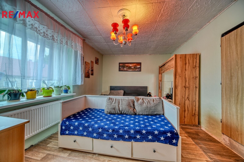 Nabízíme k prodeji řadový rodinný dům v Kopidlně, ulice Husova, s velkou zahradou o celkové ploše 1 367 m². Dům prošel částečnou rekonstrukcí v roce 2021 – byla provedena nová elektroinstalace v mědi, rozvody vody v plastu, nové plynové rozvody (nyní pozastaveny) a nové podlahy. V domě jsou plastová okna. Vytápění aktuálně zajišťuje kotel na tuhá paliva – topí se dřevem, ohřev vody je řešen bojlerem. Na střeše jsou instalovány fotovoltaické panely. Dům má revizi elektroinstalace. Komín je vyvložkovaný. Dispozičně je dům rozdělen takto: V přízemí se pod schodištěm nachází kuchyňský kout s přímým vstupem do jídelny a obývacího pokoje, dále koupelna se sprchovým koutem a samostatné WC přístupné ze dvora. V podkroví se nachází několik obytných pokojů a druhá koupelna s vanou a WC. Za domem je zpevněná plocha ze zámkové dlažby s dřevěným přístřeškem pro posezení, cihlový sklípek a zděná kolna. Zahrada je travnatá, po obvodu osázená keři a místy stromy. Dům je aktuálně obyvatelný, ale vnitřní úpravy jsou na zvážení nového majitele, dle jeho preferencí. Pokud hledáte dům s velkým pozemkem, kde už proběhly zásadní technické rekonstrukce, ale zároveň si interiér můžete upravit podle sebe, neváhejte mě kontaktovat pro více informací nebo domluvení prohlídky.