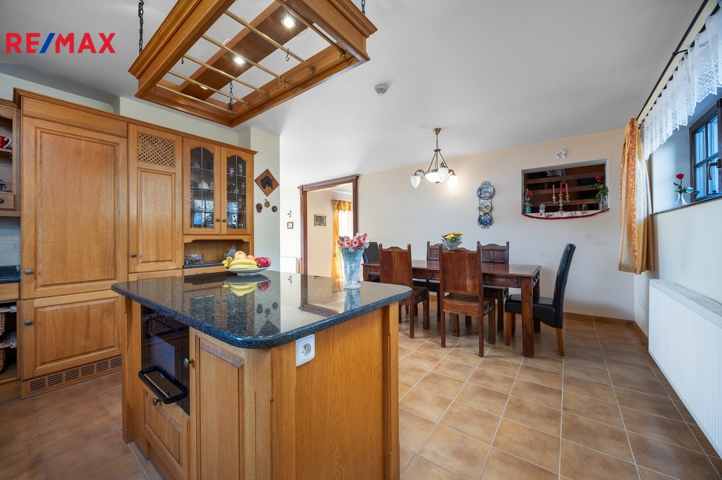 Nabízíme k prodeji prostorný patrový rodinný dům o užitné ploše cca 350 m² v obci Košátky, postavený na rozsáhlém pozemku 3 497 m², z větší části stavebním. Dům je v dobrém technickém stavu, napojen na veřejný vodovod, kanalizaci a elektřinu, disponuje vlastní studnou. Dispozice: Suterén – chodba, prádelna + technická místnost, spíž, WC, technická místnost, pokoj s koupelnou, dílna s venkovním přístupem. Přízemí – předsíň, chodba, dva pokoje, WC, obývací pokoj s kuchyní, terasa. Podkroví – ložnice s šatnou, dva pokoje, koupelna, WC, chodba a vstup na půdu. Součástí domu je velká terasa s nádherným výhledem, bazén a vedlejší stavba – v přízemí budoucí venkovní posezení s krbem, v patře prostorná garáž. Vytápění zajišťuje kotel na pelety, ohřev vody elektrický bojler, na střeše jsou solární panely s bateriovým úložištěm (2 roky staré). Dům má eurookna, alarm a v podkroví klimatizaci. Přístup je zajištěn z obecní komunikace. Tento dům nabízí komfortní bydlení v klidném prostředí, ideální pro rodinu či rekreaci s dostatkem soukromí a prostoru. Obec Košátky leží v okrese Mladá Boleslav ve Středočeském kraji, přibližně 30 km jižně od Mladé Boleslavi a 35 km od Prahy (snadná dostupnost po dálnici D10). V obci žije přibližně 400 obyvatel, panuje zde klidná venkovská atmosféra, okolí tvoří lesy, louky a zemědělská krajina. Nachází se zde základní občanská vybavenost (obecní úřad, vlaková zastávka, zastávka autobusu) v Byšicích je ZŠ, MŠ a obchody či Mladé Boleslavi je kompletní městská infrastruktura — školy, školky, obchody, služby i kultura. Košátky jsou vyhledávanou lokalitou pro klidné bydlení v dosahu města. Klíčové výhody: • Pozemek 3 497 m² (většina stavební) • Užitná plocha domu přes 300 m² • Velká terasa, bazén, garáž • Solární systém s bateriemi • Vlastní studna • Malé měsíční náklady (cca do 10tis/měs) • Klidná lokalita, výborná dostupnost Prahy a Mladé Boleslavi Prohlídky se budou konat po předchozí telefonické či e-mailové dohodě. Dovolujeme si upozornit, že v případě více vážných zájemců může být nemovitost prodána nejlepší nabídce.