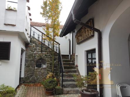 Společnost GOLDEN CASTLE s.r.o. nabízí exkluzivně k prodeji historický dům na náměstí v obci Kosova Hora u Sedlčan s možností využití na (rodinné sídlo, ubytovací zařízení, pension, obchod s byty, sídlo firmy, školící centrum, chalupa), 3 km Sedlčany, okres Příbram. Přímo u náměstí s kašnou se sochou sv. Jana Nepomuckého, naproti zámku. Vhodné k podnikání i bydlení pro větší rodinu. Nemovitost rozdělena na několik částí. Dole dva plně vybavené byty, samostatné vstupy, šel by zřídit i obchod. Technická místnost se zázemím, recepce (hospůdka). Uzavřený dvůr a prostor pro grilování. V patře venkovní terasa s fontánkou a dvě plně vybavené bytové jednotky. Nemovitost skýtá velkou možnost využití. Napojeno na obecní vodovod, elektřina 220/380, obecní kanalizace. Vytápěné řešeno kotlem plyn, elektřinou tepelné čerpadlo a některé pokoje mají krbová kamna s výměníkem dřevo. V případě zájmu doporučujeme prohlídku s naším makléřem. PENB-G. Zastavěná plocha 220 m2, obytná plocha cca 350 m2, pozemek 393 m2.