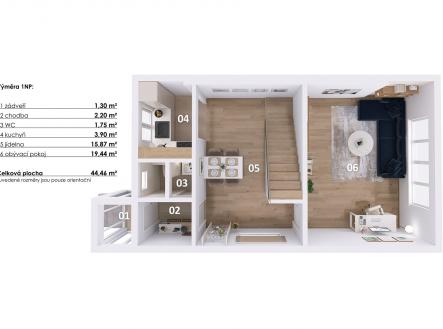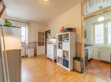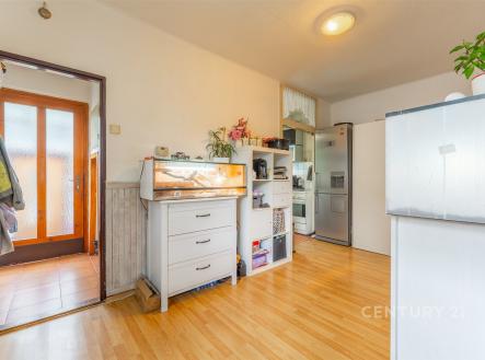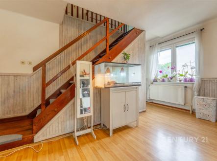 K prodeji nabízíme trojpodlažní řadový rodinný dům o dispozici 4+1 (1.NP, 2.NP, 1.PP) se zahradou, která se nachází před domem i za domem. Celková plocha pozemku i se stavbou činí 559 m2. Součástí je i krásný krytý zapuštěný bazén, který láká k protažení a odpočinku a potěší nejen děti, ale i dospělé. Dům je v celém svém zastavěném půdorysu podsklepen (zde se nachází kotelna, prádelna, sušárna, sklad na potraviny a pracovna). Přízemí: do domu vstoupíme zadní částí domu přes verandu do malé předsíně, kde se nachází WC s umyvadlem, dále pak jídelna, malá kuchyňka a obývací pokoj. Po schodech vejdeme do prvního patra. Zde je umístěna ložnice, koupelna a prostorný dětský pokoj. Stav objektu je velmi dobrý, je celkově zachovalý a plně funkční. Pokud byste si chtěli dům zmodernizovat a přetvořit k obrazu svému, doporučuji rekonstrukci s představou Vám mohou pomoci navržené vizualizace. Vybavení a technologie: Elektroinstalace: 230/400V, voda VVŘ, TUV bojler, kanalizace obecní, okna bílá plastová, střecha plochá plech. Na pozemku se nachází vlastní vrtaná studna, která je velmi praktická a výrazně ušetří náklady za vodu. Velmi praktická je i garáž, kde můžete pohodlně zaparkovat svůj vůz. Další vozy lze zaparkovat na příjezdové cestě. Milovníci zahradničení si přijdou na své díky praktickému skleníku a plodícím ovocným a kvetoucím stromům. Na pozemku je i vlastní studna to má také nesporné výhody. Součástí je i kůlna. Dům je celkově podsklepen v suterénu se mimo jiné nachází nový kotel na brikety, skimmer k bazénu a dostatek úložného prostoru. Dům stojí v klidné části obce, avšak na náměstí je to cca 5 minut pěší chůze. Dům je svou polohou ideální pro rodinu hledající cenově přijatelné bydlení na okraji města cca 30km od okraje Prahy. Dům je však vhodný i jako ideální investiční příležitost. V obci je veškerá občanská vybavenost, MŠ , ZŠ, lékaři, obchody, zámek, pivovar, multifunkční hřiště. Probíhá zde mnoho sportovních a kulturních akcí např. známé tradiční keramické trhy. Je zde dobrá dopravní obslužnost sítě PID, do Prahy na metro Háje se dostanete za 40 minut, v okolí se nachází lesy, rybníky, přírodní rezervace Voděradské bučiny aj. Dům je možno financovat hypotékou, s jejím vyřízením Vám rádi pomůžeme. V případě zájmu o více informací a prohlídku, neváhejte kontaktovat naši makléřku.