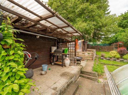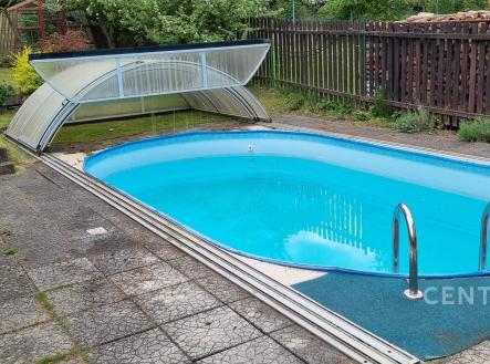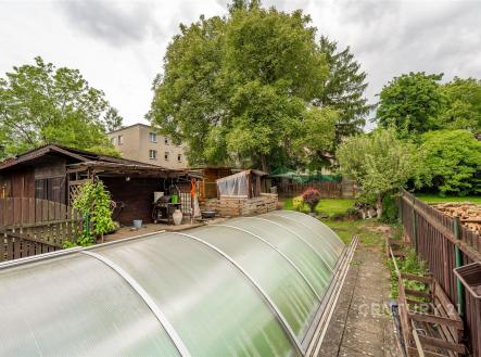 Prodej krásného řadového rodinného domu o dispozici 4+1 s bazénem a kvetoucí zahradou v Kostelci nad