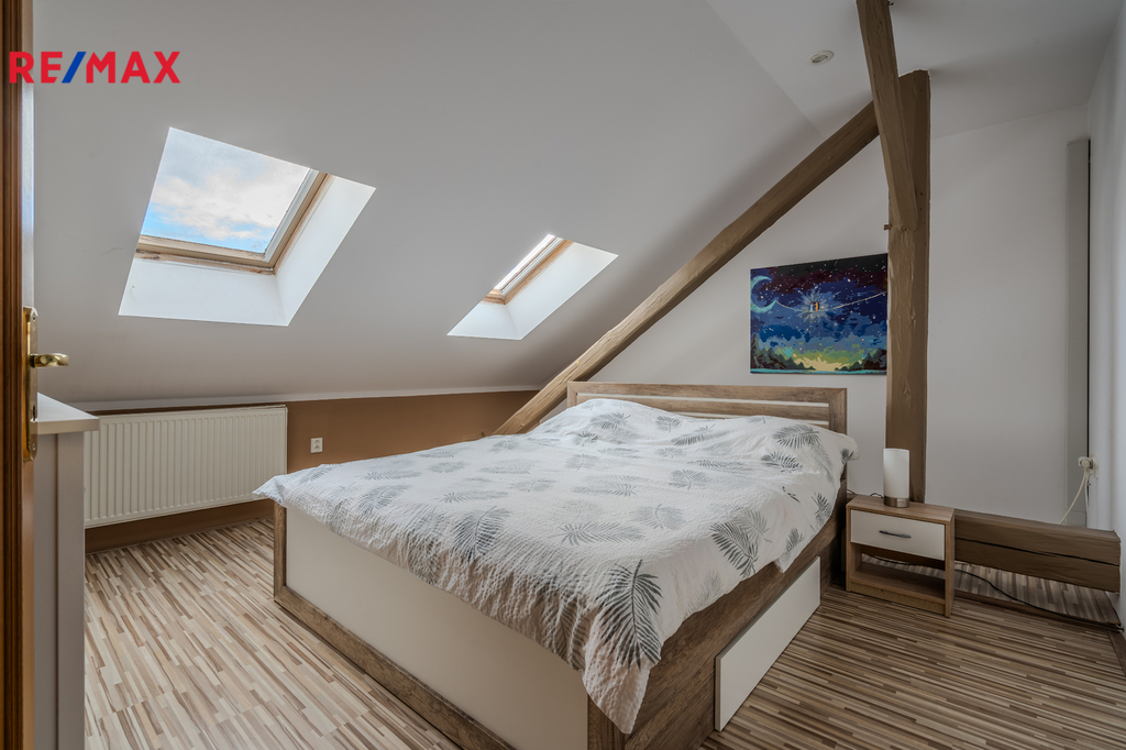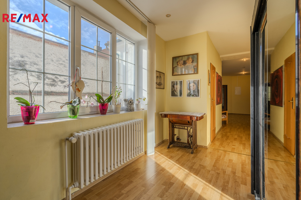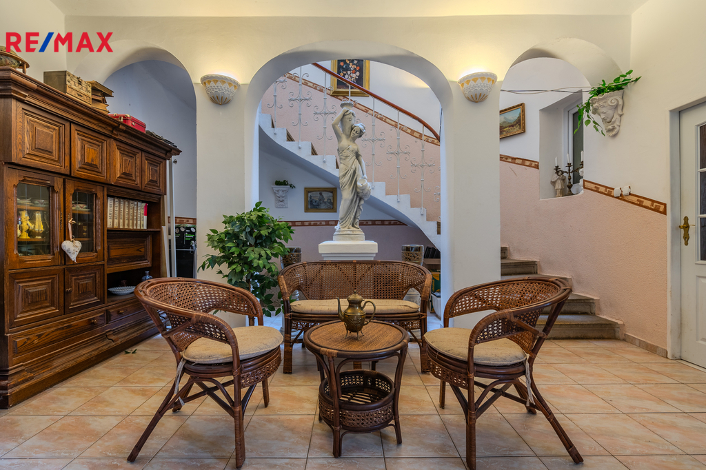Původně měšťanský dům z roku 1906 je nabídkou, která se na realitním trhu tak často neobjevuje, je to dům s duší a velkým potenciálem. Vzhledem k tomu, že stavba je v dobrém stavu, rekonstrukce by se primárně týkala hlavně interiérů. Dům je historickou hodnotnou stavbou a stojí v městské památkové zóně na exponovaném místě náměstí naproti kostelu sv. Víta. Kvalitně a bohatě zdobená neobarokní fasáda se dochovala ve své zdobnosti téměř kompletní, je bohatě zdobená eklektickým dekorem a je řešena ve dvou barevných odstínech světle žluté a starorůžové. Ve středu uliční strany střechy je osazen vikýř. Dům je o 3. podlažích a je z velké části podsklepen. Celková užitná plocha domu je 489 m2 včetně sklepů (84m2). K domu náleží udržovaná zahrádka, dílna a prostor pro relaxaci s pergolou. V roce 1995 započala rekonstrukce interiérů, kdy z původně měšťanského domu pro jednu rodinu vznikly v 1.NP nebytové prostory, oddělené halou. V roce 1996 byl celý prostor přízemí kolaudován na kadeřnictví, kosmetiku, solárium a další prostory sloužily jako zázemí (129,16m2 včetně průjezdu a vstupní haly). Proběhla rekonstrukce bytu ve 2.NP, původní byt 3+1 s příslušenstvím je nyní 2+1, 2x hala, WC, koupelna, šatna a balkon s nádherným výhledem do zahrady (128,03 + balkon 9,61m2). Ve 3.NP vznikl podkrovní byt 4+1 s halou (138,36m2). S rokem 2008 se domu vrátilo jeho původní využití, stal se domem pro vícegenerační rodinu, proběhla rekonstrukce střechy a její zateplení, výměna oken, plynového kotle, který slouží k vytápění i ohřevu vody. Dům dnes slouží jako zázemí vícegenerační rodině, nebytové prostory se komerčně nevyužívají. I když je dům přímo na náměstí, dvůr a zahrada nabízí naprosté soukromí a klid. Místo je velmi krásné a možností ladit prostor dál je velmi mnoho. Dům je ideální pro rodinu, která chce do nemovitosti přesunout i podnikání, nebo nebytové prostory pronajmout. Obě bytové jednotky je nutno oddělit, jsou propojené schodištěm. Je zde i možnost rekolaudace na 1+1 (32,79m2) a 2+1 s příslušenstvím ( 42,08m2) v 1.NP, vybudovat v domě kvalitní 4 bytové jednotky, případně je využitelný pro vícegenerační bydlení. K domu je stavební dokumentace, veškeré podklady k rekonstrukci a kolaudaci jsou k dispozici. Dům je napojen na veškeré sítě, vodovod (rozvod v plastu), plyn (teplo a ohřev vody), kanalizace. Nemovitost je bez omezení vlastnických práv. V současné době je nemovitost obývána vícečlennou rodinou. Některé fotografie jsou prezentovány s využitím AI home staiging, a to bez nábytku a osobních věcí, část prostor v 1.NP, průjezd domu, dílna. Kontaktujte mne prosím, ráda si s vámi pohovořím o této jedinečné nabídce, veškeré informace nelze sdělit v omezeném prostoru inzerce. V případě vícero zájemců o koupi bude upřednostněna nejkvalitnější nabídka.