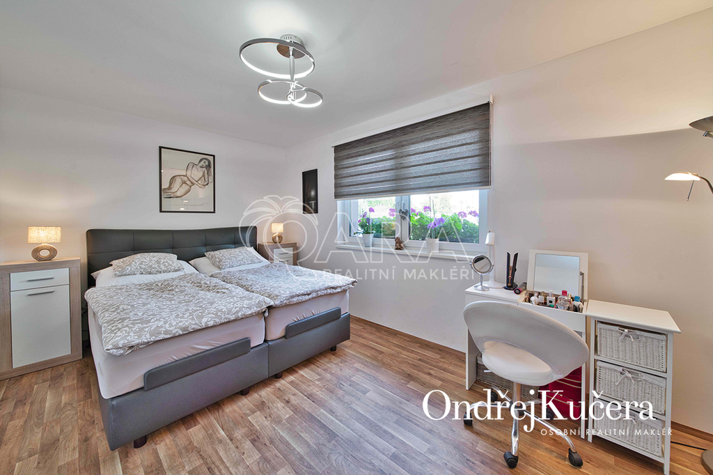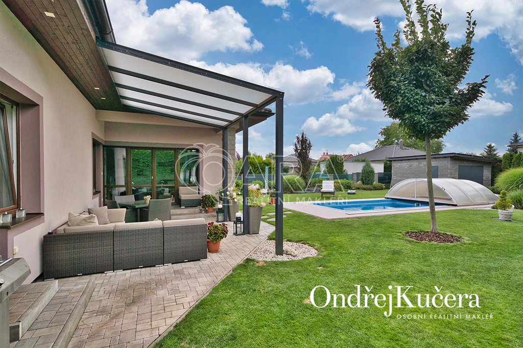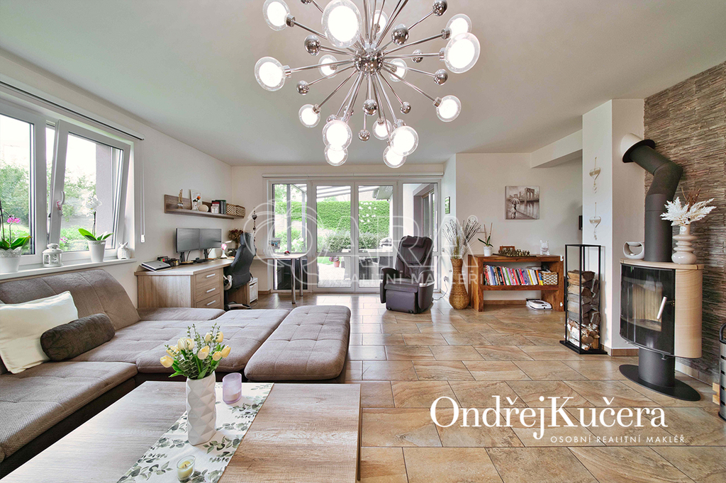 Mimořádně úsporný rodinný dům s důrazem na soukromí, kvalitu, energetickou efektivitu a pohodlí. To vše právě prodávám na adrese K Jahodovce 1101 v Kostelci nad Labem. Jde o přízemní cihlový dům o dispozici 4+1 s plochou 140 m2 a zastřešenou terasou, na pozemku o celkové rozloze 1015 m2. Zdivo ytong, silné zateplení, trojskla, podlahové topení a tepelné čerpadlo. Dům je napojen na fotovoltaický systém o výkonu 20 kW s bateriovým úložištěm 30 kW a připraven na provoz tří elektromobilů včetně domácnosti. Interiér je navržen prakticky a moderně. Přes zádveří s vestavěnou skříní projdete do jídelny s kuchyní a dále do prostorného obývacího pokoje. Z centrální chodby máte přístup do dvou ložnic se vstupem na terasu. Dále do hlavní samostatné ložnice, prostorné šatny, technické místnosti, koupelny s rohovou vanou, sprchovým koutem a toaletou. Další toaleta je zvlášť. V obývacím pokoji o výměře přes 30 m2 je rodinný krb a vstup na krytou terasu. Kuchyň je od jídelní části oddělena decentním barovým pultem a je vybavena veškerými vestavěnými spotřebiči značek Bosch a Miele, včetně americké lednice. Vedle kuchyně je i samostatná spíž. Dveře a obložky jsou vyrobeny z masivu, okna mají moderní žaluzie typu den a noc, osvětlení je řešeno dekorativními LED prvky. Zahrada kolem domu byla promyšleně navržena architektem, aby se během roku měnila v pestrou podívanou. Automatický zavlažovací systém napojený na vlastní vrt a retenční nádrž zajišťuje její nenáročnou údržbu. Je zde také zapuštěný keramický bazén se slanou vodou a samostatný zahradní domek s dílnou. Součástí prodeje je i automatická sekačka. Tento dům nabízí soukromí, komfort, kvalitní materiály a velmi nízké provozní náklady i díky mimořádně úsporné energetické třídě A. Místo se také pyšní výbornou dostupností do Prahy. Do Letňan se dostanete za 20 minut autem. V blízkosti je vše, co můžete potřebovat každý den - škola, školka, lékař, obchody, sportovní centrum, restaurace, knihovna, či nedaleké autobusové a vlakové zastávky. A zejména pak přímý kontakt s přírodou – řeka Labe, čisté lesy, cyklostezky, koupací jezera a mnoho dalšího. Přijďte se podívat. Ozvěte se a rád Vás provedu osobně celým domem a zahradou. Ondřej Kučera osobní realitní makléř