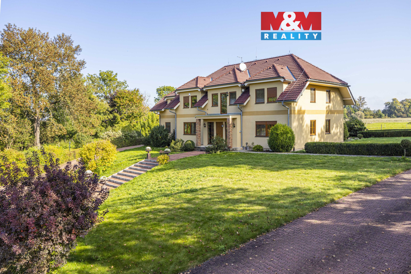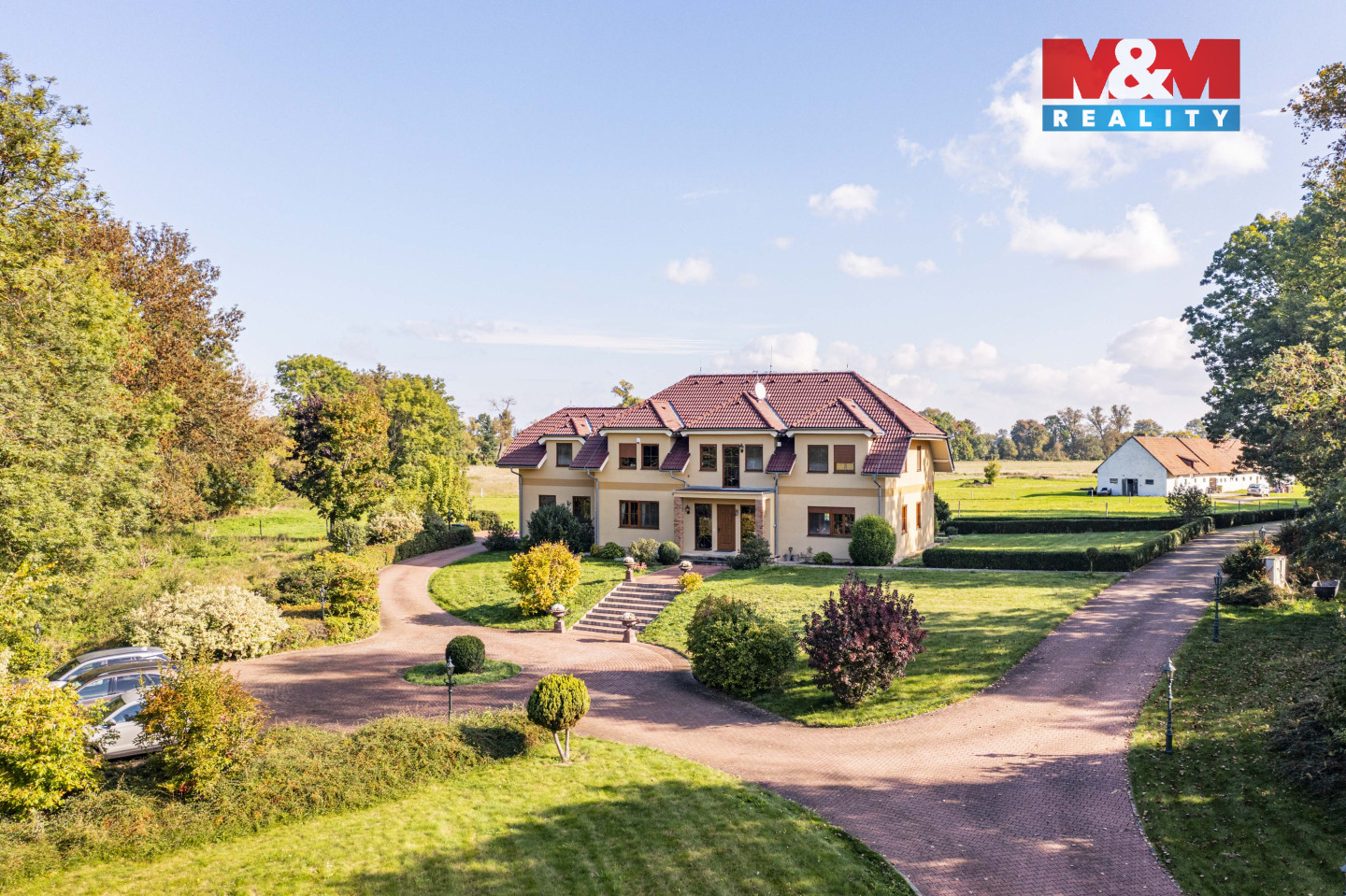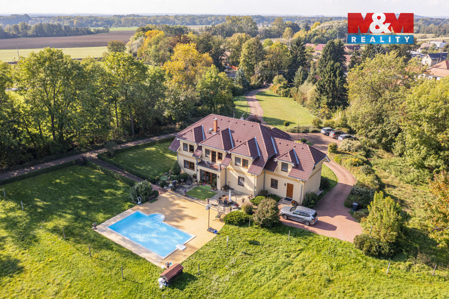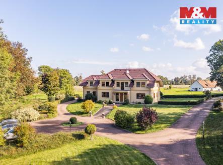 Prodej zatepleného rodinného domu se dvěma balkony, terasou a vyhřívaným bazénem 10x5m v historicky známé části obce Kostomlaty nad Labem - Rozkoš. Podlahová plocha RD je 370m2. Plocha pozemku — cca 6.500 m2. Parcela je součástí plochy pozemků ve vlastnictví majitele určených dle ÚP k zastavení o velikosti cca 10.000 m2. Přípojky na veřejný vodovod a kanalizaci jsou na hranici pozemku. Vrtaná studna (28m), EKO čistička odpadních vod. Ohřev teplé vody — elektrický kotel. Podlahové vytápění, krb. Protipožární zabezpečení, bezpečnostní systém. Venkovní rolety, dálkové ovládání brány. Cca 1.200m2 vydlážděné cesty s kruhovým objezdem, nově vyprojektovaná velká zahrada s vodopádem a jezírkem. Podél cest je nainstalováno venkovní osvětlení na dálkové ovládání. Dalším předmětem prodeje může být také stáj se 22 boxy pro dostihové koně. Celková plocha pozemků obou komplexů nemovitostí je cca 10 ha. Více informací v RK.