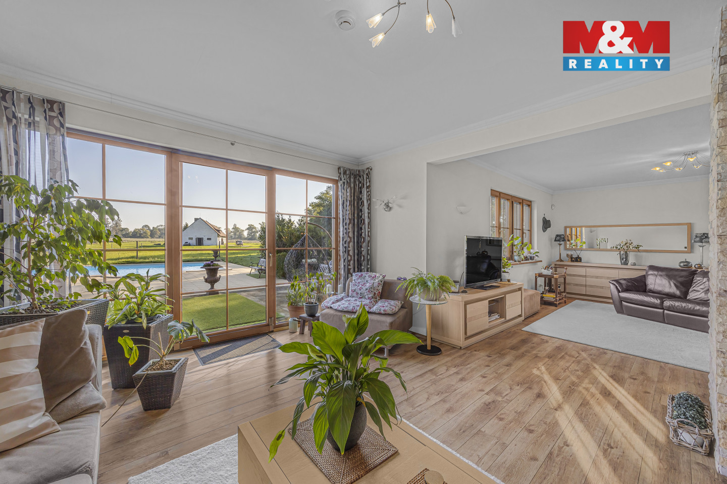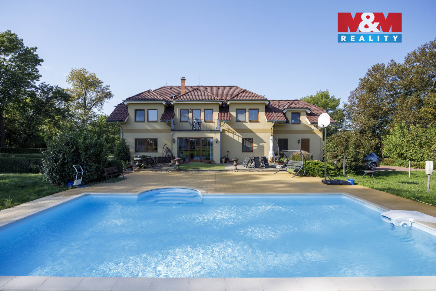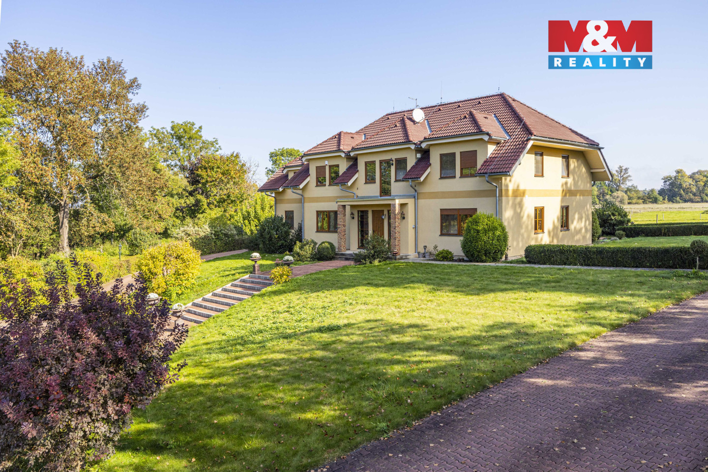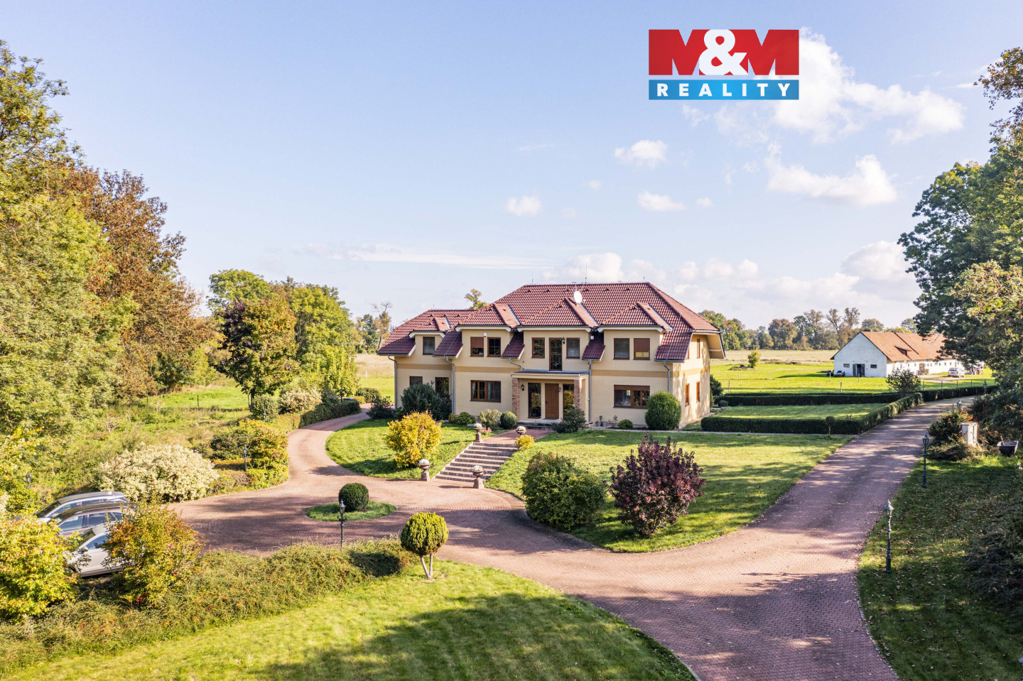 Prodej zatepleného rodinného domu se dvěma balkony, terasou a vyhřívaným bazénem 10x5m v historicky známé části obce Kostomlaty nad Labem - Rozkoš. Podlahová plocha RD je 370m2. Plocha pozemku — cca 6.500 m2. Parcela je součástí plochy pozemků ve vlastnictví majitele určených dle ÚP k zastavení o velikosti cca 10.000 m2. Přípojky na veřejný vodovod a kanalizaci jsou na hranici pozemku. Vrtaná studna (28m), EKO čistička odpadních vod. Ohřev teplé vody — elektrický kotel. Podlahové vytápění, krb. Protipožární zabezpečení, bezpečnostní systém. Venkovní rolety, dálkové ovládání brány. Cca 1.200m2 vydlážděné cesty s kruhovým objezdem, nově vyprojektovaná velká zahrada s vodopádem a jezírkem. Podél cest je nainstalováno venkovní osvětlení na dálkové ovládání. Dalším předmětem prodeje může být také stáj se 22 boxy pro dostihové koně. Celková plocha pozemků obou komplexů nemovitostí je cca 10 ha. Více informací v RK.
