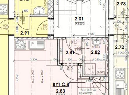 Tento podkrovní mezonetový byt se nachází ve 2. a 3.NP rekonstruovaného domu, ve kterém je více bytů venkovského stylu. Spodní podlaží bytu má 19 m2 a je tu vstupní chodba, obývací pokoj s kuchyňským koutem, WC s umyvadlem a místem pro pračku, je zde jedno střešní okno. V podkroví o velikosti 18,5 m2 je pak otevřená ložnice, ve které bude volně stojící vana s krásným výhledem vikýřem do přírody, dále umyvadlo a komora. Orientace bytu je východ a západ. Dům je zateplen, na střeše jsou nové betonové tašky, PENB typu B. Nízké náklady na energie a vodu. Topení a teplá voda je tepelným čerpadlem, vytápění v podlaze. Voda obecní vodovod, splachování dešťovka. Okna plastová, trojsklo. V domě je bezdrátový internet a společná anténa. Součástí kupní ceny jsou: podlahy, zárubně, dveře, koupelna vč. obkladů, sanity. Ve dvoře objektu bude park s lavičkami a herními prvky pro děti, dále wellness. Parkování zajištěno, možnost i dokoupení garáže. Byt číslo 8.