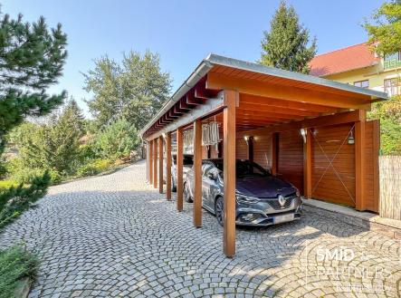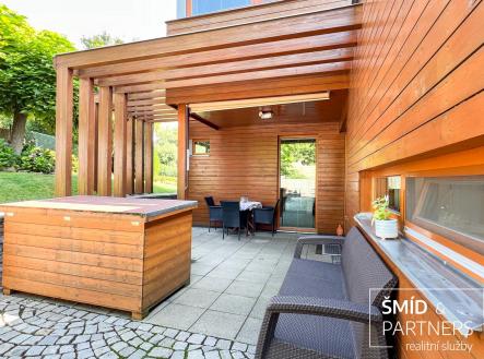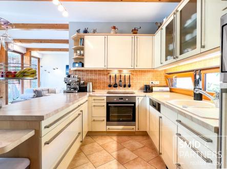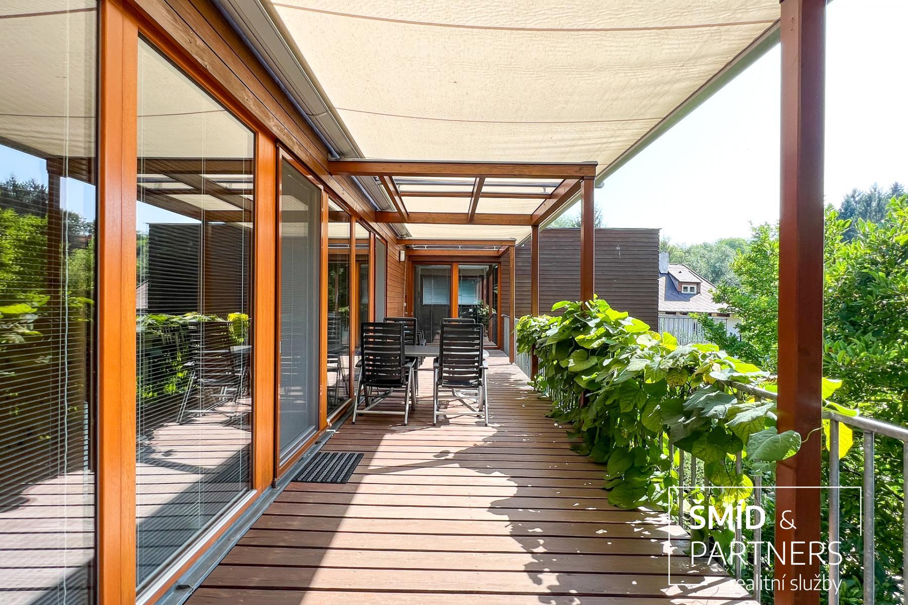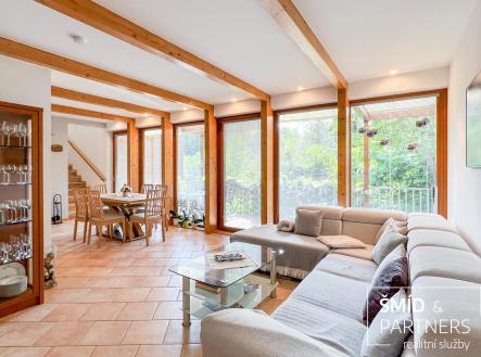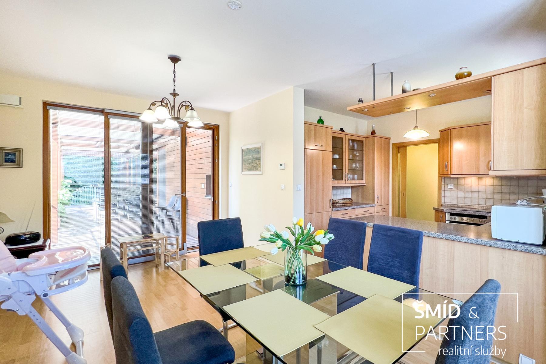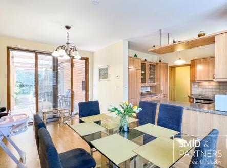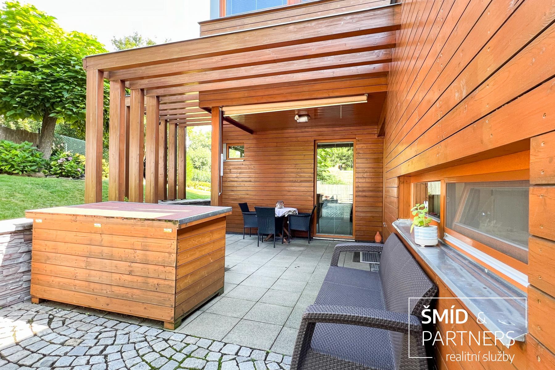 Nabízíme Vám k prodeji mimořádnou nemovitost - prostorný rodinný dům 6+2 na pozemku o rozloze 1759 m2, nacházející se v atraktivní lokalitě historického města Kouřim. Projektantem je Ing. arch. Josef Smola, který je známý realizacemi především pasivních a nízkoenergetických staveb. Dům byl kolaudován v roce 2005 a je ve velmi dobrém stavu. Byl postaven ze dřevěných panelů, zateplen polystyrenem, a navíc obložen dřevem. Celková tloušťka stěn je 38 cm. Základy jsou betonové. Plocha zelené střechy, která je výborným izolantem, je 215 m2 na domě a dalších 55 m2 na parkovacím stání. Celková užitná podlahová plocha prvního a druhého nadzemního podlaží je 245 m2. Plocha suterénních a skladovacích prostor pod domem je 130 m2. Součástí domu jsou 3 terasy, celkem 53 m2. Na pozemku jsou parkovací stání pro 3 auta. Vytápění je elektrické a je rozvedeno po většině domu podlahami. V ostatních místnostech jsou přímotopy. Alternativou jsou krbová kamna na tuhá paliva v obývacím pokoji. Kanalizace i vodovod jsou obecní. Dům má dvě oddělené bytové jednotky a je vhodný především k bydlení pro vícečlennou rodinu. Každá bytová jednotka má vlastní vchod, vlastní terasu, koupelnu a kuchyň a také vlastní parkovací stání. Dále je k dispozici sauna, relaxační místnost a další technické místnosti a šatny. Po domě je rozvedeno centrální vysávání. Je tu instalován systém na dodatečnou filtraci pitné vody. Dům využívá speciální systém přisávání a odsávání vzduchu, který funguje zcela automaticky a odsává teplý a vlhký vzduch z koupelen a kuchyní. Nemovitost je napojena na pult centrální ochrany, má všude pohybová bezpečnostní čidla. Na okrasné zahradě je instalován závlahový systém. Na oknech v prvním patře jsou elektrické rolety a na terase elektrická markýza. Co se týče PENB, je patrné, že tabulka Ukazatele energetické náročnosti sice uvádí ve dvou kategoriích třídu B (velmi úsporná) a ve třech kategoriích třídu C (úsporná), ale celkově vychází na G. Zařazení do třídy G vychází výhradně z dikce uvedené vyhlášky, která znevýhodňuje energie z neobnovitelných zdrojů koeficientem 2,6 ve srovnání s energiemi ze zdrojů obnovitelných. Jedná se tedy ryze o klimatický pohled současné doby bez vazby na skutečný stav a technické řešení a elektrické vytápění bez využití fotovoltaiky nebo tepelného čerpadla zařadí jako klimaticky nevhodné, a tudíž třída G.. Z praktického pohledu běžného života v RD a porovnání obytné plochy s roční skutečně spotřebovanou elektrickou energií (vytápění, ohřev vody, osvětlení, vaření, ostatní elektrospotřebiče v domácnosti a sauna) vychází energetická náročnost na hodnotu ca 95 kWh/ m2. . Celková spotřeba elektřiny v celém RD (oba byty + technické zázemí vč. sauny) za sezónu 23/24: 19,138 MWh ( 17.427 MWh nízký tarif ) , 0,075 -přepočet na MWh/1 m2, Celkově 116 362,- za rok. Dále vodné a stočné cca 1 580,-/měsíc včetně závlahy zahrady, pult centrální ochrany 1 000,-/ měsíc