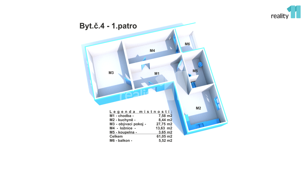 Pronájem, byt, 2+1, 66 m2, Kouřim