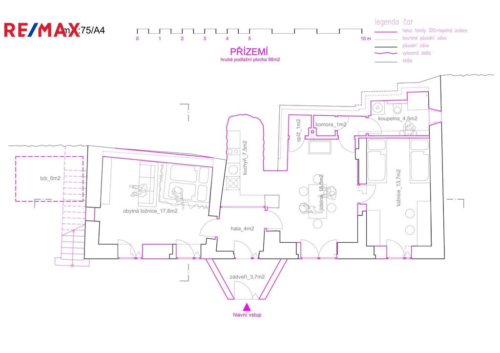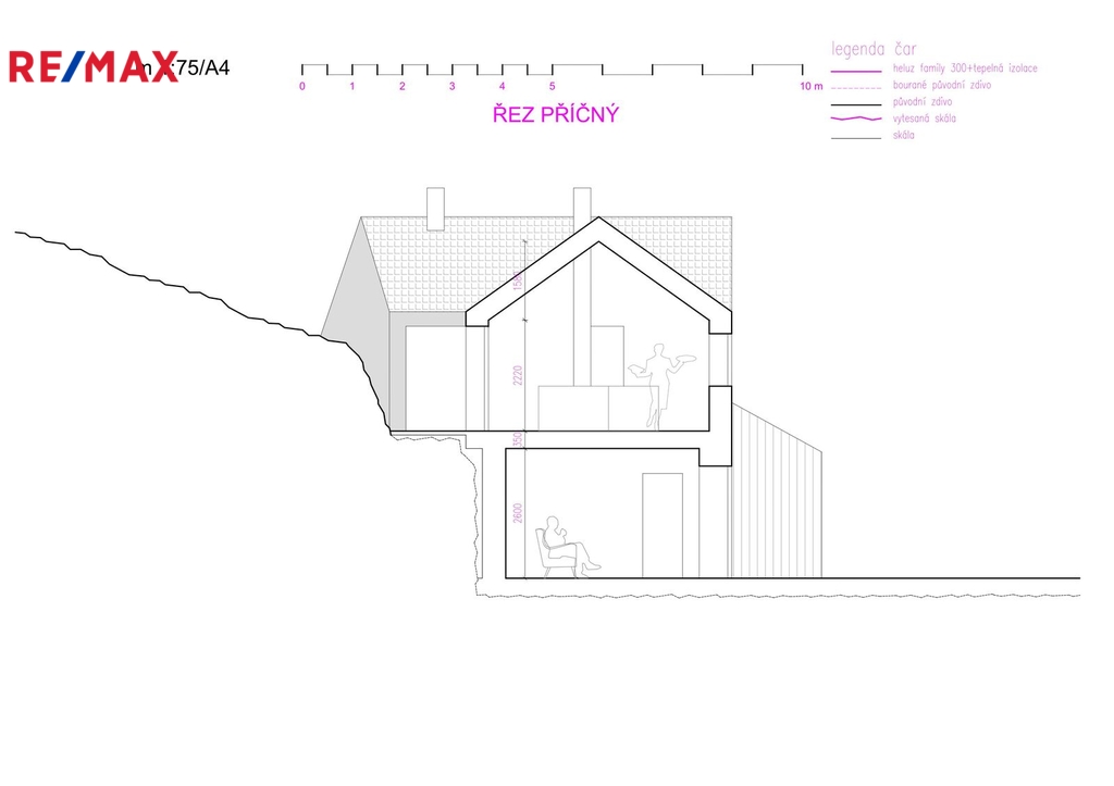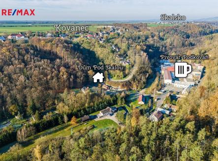 Nabízíme Vám dům ke kompletní rekonstrukci. Dům z počátku 20. století umístěný v zajímavém terénu s pískovcovou skálou lemovaný serpentýnou komunikace místního významu s nízkým provozem. Zadní stěnu domu tvoří skalní pískovcový masiv, se zřejmě dodatečnými cihelnými izolačními předezdívkami (se vzduchovou mezerou). U domu je provedena studie pro přízemní dům s obytným podkrovím. Příznačně nazvaný "Dům Pod Skálou". V přízemí je řešen jako bytová jednotka 3+kk užitné plochy 65 m2 a v podkroví jako další bytová jednotka dispozice 3+kk s užitnou plochou 81,6 m2. Obě bytové jednotky jsou samostatně přístupné. Lze je tedy využít pro vícegenerační bydlení, případně pro vlastní bydlení v jedné jednotce a druhou pronajímat. Více ve fotogalerii. Již jsou zhotoveny podklady ke stavebnímu povolení s kladným vyjádřením dotčených orgánů. Dům je připojen na elektřinu, kanalizaci a vodovod. V okolí domu se nachází několik rodinných domů, pivovar Podkováň. Zastávka autobusu 100 m od domu. V nedaleké obci Skalsko je k dispozici mateřská škola, základní škola, střední škola, smíšené zboží a pošta. Doporučuji prohlídku tohoto unikátního domu pro zájemce, kteří ocení originální dům harmonicky snoubící prvky bydlení našich předků s nejmodernějšími koncepty a technologiemi komfortního bydlení.