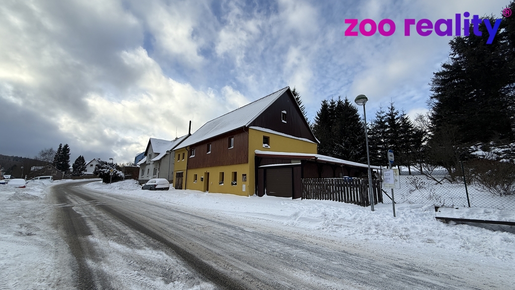 Nabízíme k prodeji dům s číslem popisným, vedený v katastru nemovitostí jako stavba pro rodinnou rekreaci v obci Kovářská, která stojí 25 kilometrů západně od Chomutova na hřebeni Krušných hor v nadmořské výšce okolo 800 metrů v údolí potoka Černá voda. Dům prošel částečnou rekonstrukcí, má novou fasádu, plastová okna, plechovou střechu, půda je kompletně zateplená foukanou vatou. V přízemí domu je kuchyně v původním stavu, prádelna ve dvěmi WC a sprchovým koutem, technická místnost se zánovním kotlem na uhlí a velká dílna s prostorem na uhlí . V patře jsou čtyři průchozí pokoje - ložnice, obývací pokoj, koupelna po kompletní rekonstrukci se sprchovým koutem, WC a umyvadlem. Dům má prostornou terasu se schody na zahradu. Vedle domu je nově přistavěna garáž na dva osobní automobily, vrata jsou elektrická, pojezdová. K domu náleží prostorná oplocená zahrada, část zahrady je vedeno jako zbořeniště (možnost využít jako stavební parcelu). Pro bližší info volejte makléři.