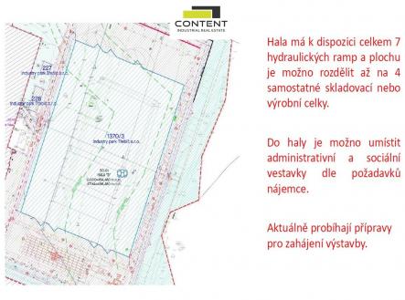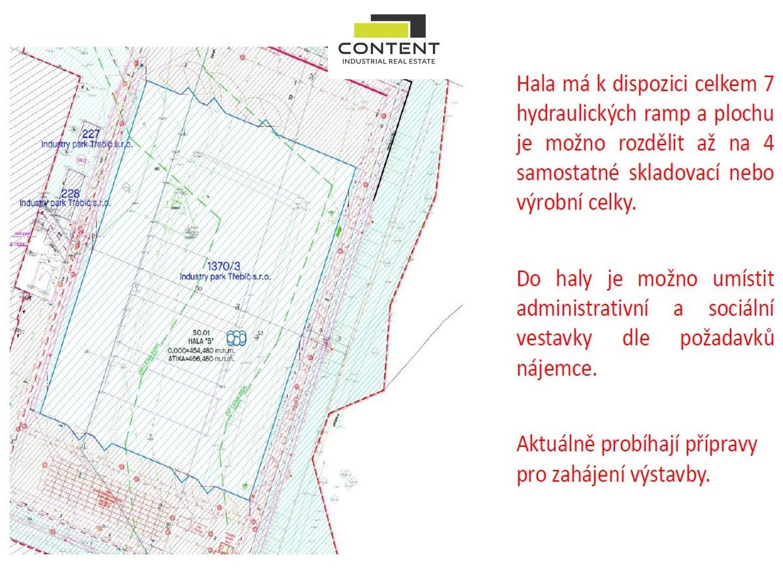 Pronájem skladu, výrobních prostor 1000 m² Třebíč - Kožichovice. V zastoupení majitele a bez provize nabízíme prostory pro sklad nebo výrobu, umístěné v komerčním parku : - samostatná industriální budova 5000 m² k výstavbě - zemní práce zahájeny, stavební povolení vydáno - lze dělit na samostatné jednotky od cca 1000 m² - nosnost podlahy 5 t/m² - světlá výška 12 m - příkon elektrické energie dle požadavku - průmyslová zóna mimo městskou zástavbu - kanceláře, sociální zázemí na klíč - areál oplocený, hlídaný, přístup 24/7 - výborná dostupnost pro zaměstnance autobusem i vlakem - dostatečné manipulační i parkovací plochy pro veškerou dopravu Cena nájmu EUR 6,80 za sklad a EUR 9,00 za kanceláře + energie a služby. Fotografie hotových objektů jsou ilustrativní. Pro více informací nás kontaktujte, rádi zodpovíme Vaše dotazy.