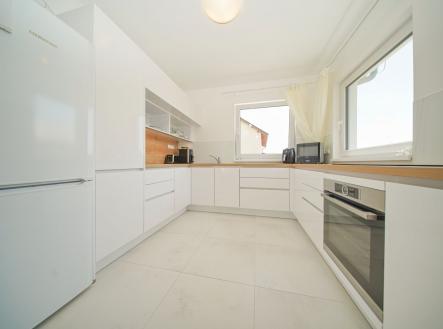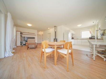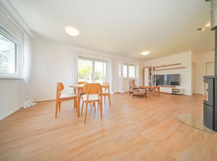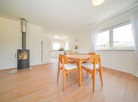 Prodej samostatně stojícího RD, dřevostavby bungalovu o dispozici 3+kk, z roku 2022, od dodavatele Wolf System na betonové základové desce doplněného o betonovou garáž Prefa 6x5m. Dům se nachází na krásném klidném místě v Kozojedech, okr. Praha východ, ulice Polní. Kolaudace v roce 2022. Podlahová plocha 83 m2 + 28 m2 garáž, plocha pozemku 848 m2. Dům je napojen na obecní vodovod a kanalizaci. Vytápění tepelným čerpadlem napojeným na podlahové topení. Jako doplňkový zdroj tepla instalována kamna na dřevo, napojená na komínové těleso Schiedel. Okna plastová, s izolačním trojsklem. Podlahové krytiny: chodba, technická místnost, koupelna a kuchyň dlažba, obývací pokoj, jídelna, ložnice a šatna vinyl. Podlaha v garáži v hrubé betonové stěrce, sekční garážová vrata Hörmann šedé barvy, shodné s vnějším dekorem oken a vstupních dveří. Střecha domu valbová, sklon 22°, přesahy 50 cm, střešní taška Bramac. Střecha garáže rovná, potažená hydroizolační vrstvou. Obvodová stěna: ULTRA MEGA WAND (tl. 321 mm, U = 0,135W/m²K), REI 60, světlá výška místností 2,50 m. Dům má velice nízké provozní náklady. Příjezdová komunikace i chodníky provedeny ve finální zámkové dlažbě, s veřejným osvětlením ulice. Pozemek je kompletně oplocen. Ve směru k ulici z betonových plotových prefabrikátů (stavebnice sloupek + výplň), branka a brána z hliníkových profilů a plot mezi sousedním pozemkem v systému pletiva a ocelových sloupků s plastovou povrchovou úpravou v zelené barvě. V domě prostorný a světlý obývací pokoj se vstupem na dřevěnou terasu, okny prosvětlená kuchyně včetně linky a spotřebičů, dvě ložnice, koupelna se sprchovým koutem, toaletou a topným žebříkem, vstupní chodba, technická místnost s umyvadlem a pračkou. Dům se prodává zařízený viz. foto. Nádherné okolí, lesy, Voděradské bučiny, rybníky, cyklostezky a turistické trasy. Přírodní koupaliště 500 m od domu, multifunkční hřiště a venkovní posilovna 250 m od domu. Autobusová zastávka 8 min pěšky od domu. Bus za 35 min na metro Háje. Okamžitě k dispozici. Možnost hypotéky.