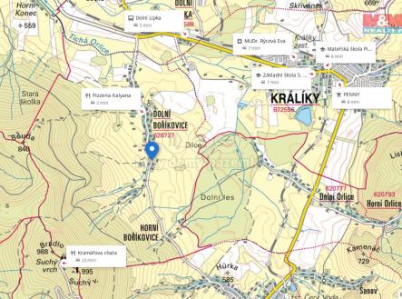 Nabízíme Vám ke koupi pozemek v obci Dolní Boříkovice - Králíky. Pozemek je složen ze dvou parcel o celkové ploše 1 731 m², určen k výstavbě rodinného domu nebo chalupy. Pozemek hraničí s obecní komunikací. Na hranici pozemku je přivedena přípojka elektřiny a přípojka obecního vodovodu. V blízkosti se nachází velmi vyhledávané vojenské opevnění, Suchý vrch, vojenské muzeum Králíky, skiresort Dolní Morava, skiareál Červená Voda a Čenkovice. Pro více informací a domluvení prohlídky neváhejte kontaktovat makléře. S financováním Vám rád pomůže náš finanční specialista.