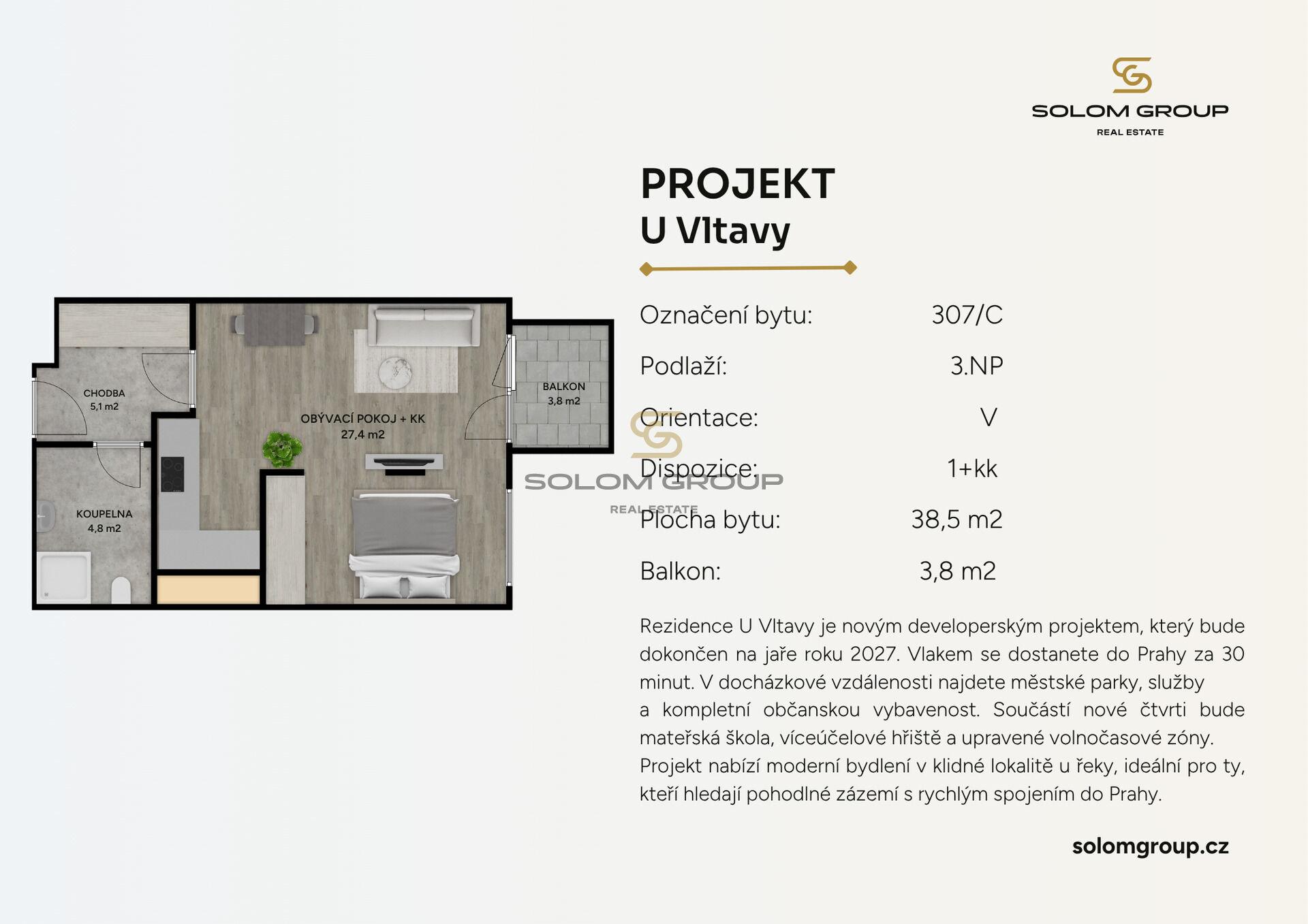 Prodej NOVÉHO bytu 2+kk, 42,3 m² (byt o výměře 38,5 m² + balkon o výměře 3,8 m²), který se nachází ve 3. NP cihlové novostavby v Rezidenci U Vltavy, Kralupy nad Vltavou (Dům C) Jelikož se jedná o družstevní byt, neprokazujete výši příjmu, nepotřebujete hypoteční úvěr a cenu bytu splácíte formou splátek v měsíčních poplatcích („měsíční splátka anuity“) Splácet začínáte až po kolaudaci domu, do té doby nic neplatíte. Byt Vám je předán hotový vč. zařízené koupelny (umyvadlo, vana nebo sprchový kout, topný žebřík a závěsné WC) dále interiérové dveře, plastová okna, nové rozvody vody, elektřiny a odpadů, příprava pro kuchyňskou linku, protipožární vchodové dveře, obklady a dlažba. Je možno také využít dotaci na výběr podlahové krytiny ve výši 500 Kč/m2. Akontace za byt: 1.990.000,- Kč. Anuita k bytu: 3.337.650,- Kč. Možnost vložení mimořádné splátky či doplacení celé výše anuity a převedení bytu do osobního vlastnictví. Výborná dopravní dostupnost, 30 min. Praha, 35 min. Mělník nebo 30 min. Neratovice. Lokalita je vhodná jak k vlastnímu bydlení, tak za účelem pronajímání. Termín kolaudace: jaro 2027.