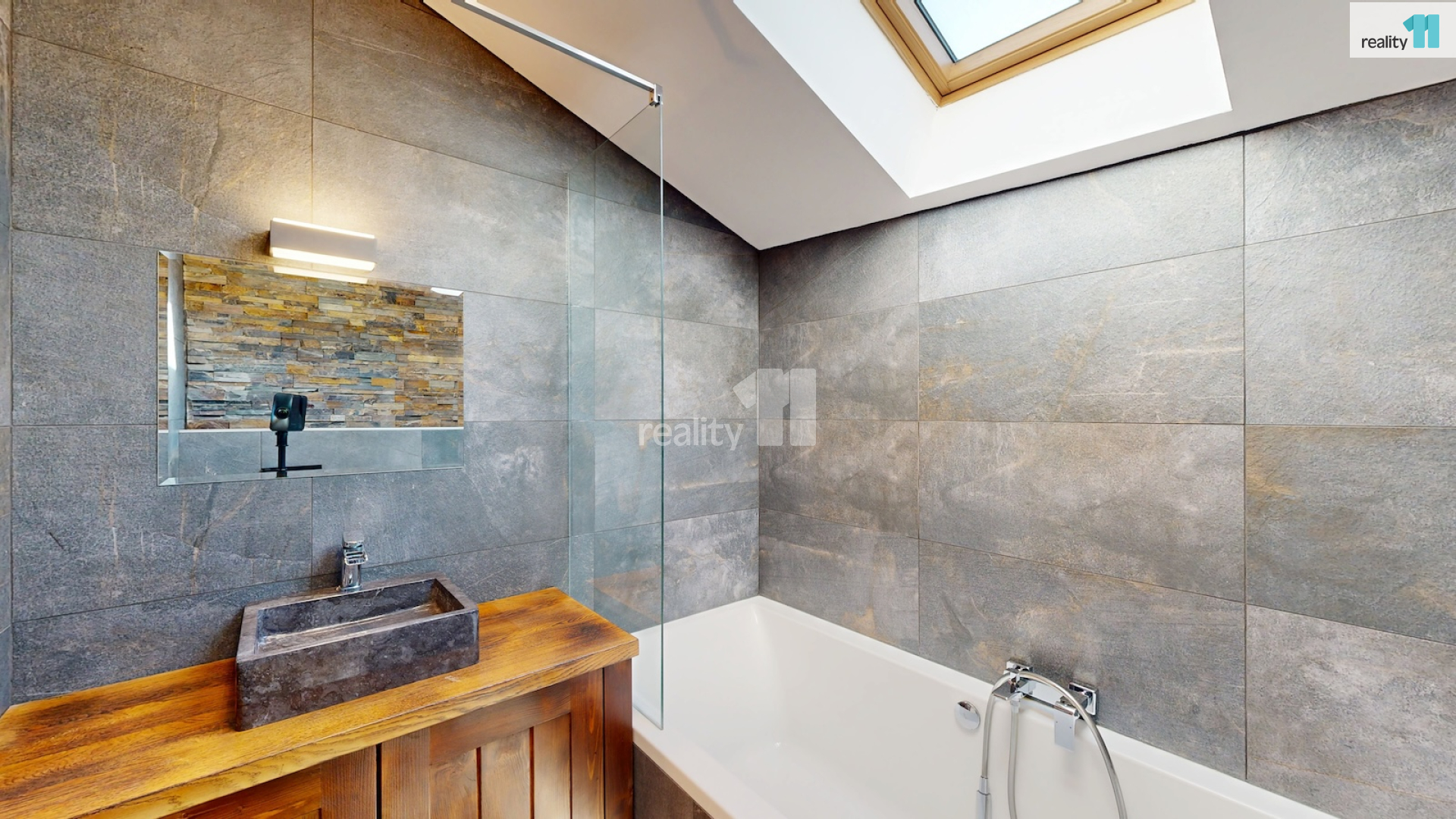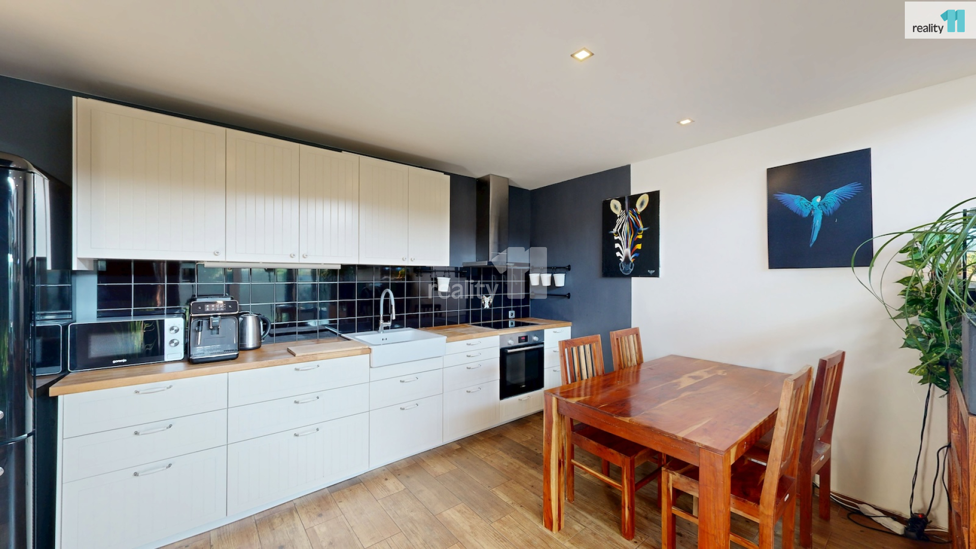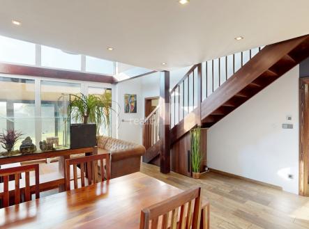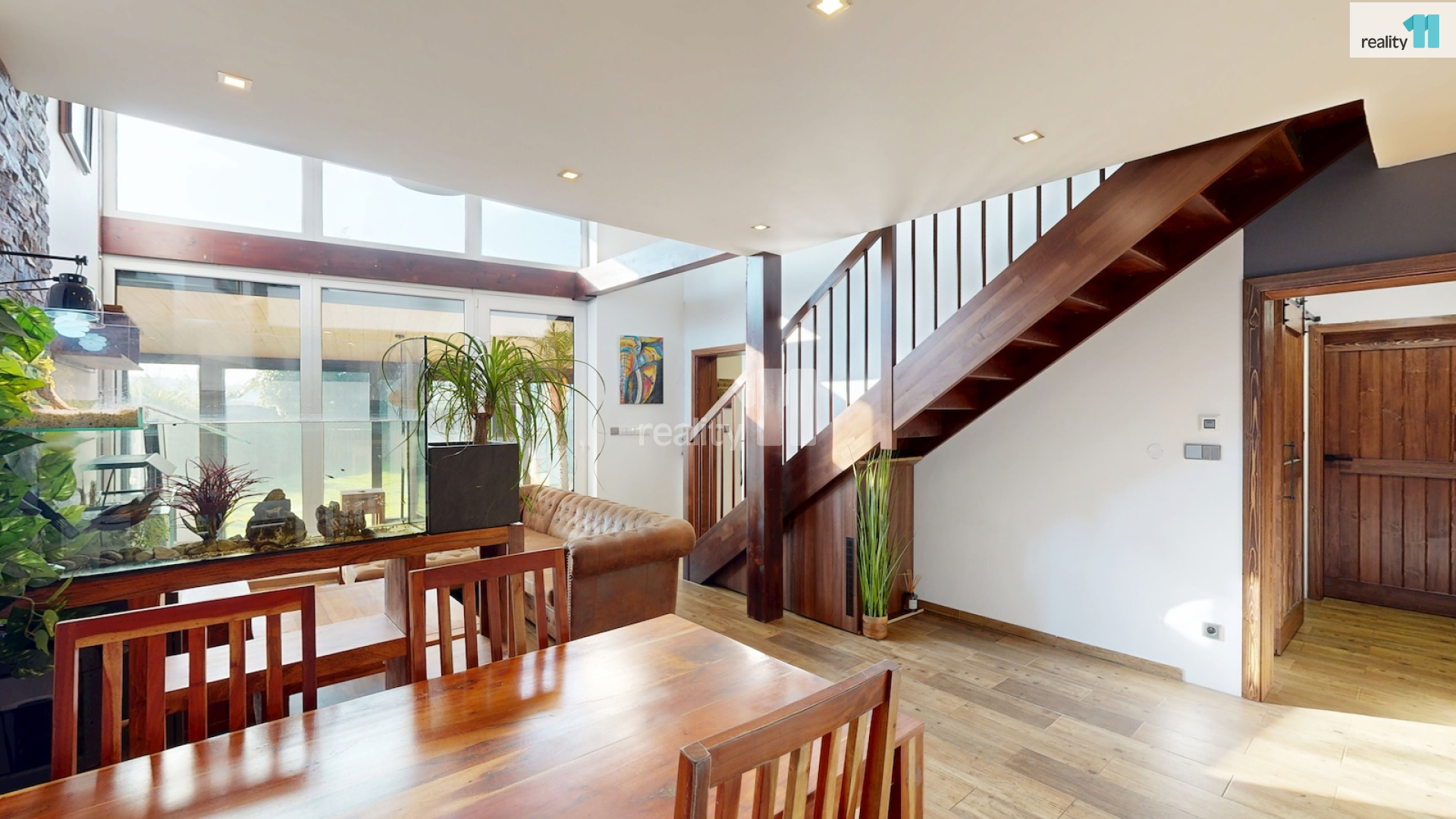 Hledáte moderní, útulný dům, splňující požadavky na pohodlné bydlení, umístěný v klidu, přesto s velmi dobrou dostupností do města? Nabízíme Vám patrový rodinný dům 4+kk, s užitnou plochou 152 m², umístěný v novém areálu rodinných domů Zeměchy, kousek od Kralup nad Vltavou, který splní všechny Vaše požadavky. Dům je postaven z moderních materiálů, umístěný do příjemné zahrady s velkou terasou, prostornou garáží a vydlážděnou plochou pro další 2 - 3 auta, technickým domkem a venkovní vířivku. Má skvělou dispozici - z podlouhlé velké zimní zahrady, která je využívána jako pracovna a druhý obývací pokoj, se vchází do zádveří s velkou vestavnou skříní na boty a kabáty. Odtud pak do obývacího pokoje s kuchyňským koutem (velká kuchyňská linka, prostor pro jídelní stůl i rohovou pohovku), který je útulným centrem pro setkání s rodinou a přáteli. Z obývacího pokoje se vchází do menší chodby, s praktickým výklenkem na technické zázemí (kotel, pračka, sušička a mnoho polic), vstupem do koupelny se sprchovým koutem, a do ložnice (studentského pokoje) s dalšími skříněmi. Dvě ložnice a hlavní koupelna s vanou Vás čekají v patře, kam se dostanete po dřevěných schodech. Pokud by nový majitel potřeboval, dá se přistavět ještě další pokoj nad střechu garáže, při jejíž výstavbě se s touto možností počítalo. Dům je plný světla, i díky jedné stěně, která je kompletně prosklená. Jsou zde kvalitní podlahy, obklady i sanitární technika, podlahové elektrické vytápění, klimatizační jednotky. Majitelé nad zařízením důsledně přemýšleli, aby v domě byl dostatek úložných prostor a dál působil pohodlně, takže jsou využity i prostory pod schodištěm a další zákoutí. Zimní zahrada se vstupem na terasu, má přípravu i pro případné umístění krbových kamen. Terasa slouží zejména pro relaxaci, grilování, posezení a rozděluje zahradu na přední a zadní část. Přední část je travnatá s automatickou závlahou, s několika okrasnými keři a slouží zejména pro děti. Zadní část je vydlážděná, vhodná pro parkování, nebo trénink na koš? Je zde také menší technický domek (nemusí zůstat), i když v garáži je opravdu dost prostoru i pro vášnivého kutila. Okolní domy jsou postavené tak, aby měl každý své soukromí, přesto zde panují příjemné sousedské vztahy. Skvělá dostupnost do Kralup, Prahy i dalších lokalit. Stanice vlaku Zeměchy je od domu 350 m, odtud do centra Kralup vlak každých 30 minut, některé spoje jedou až do Prahy. Dále do areálu zajíždí školní autobus, který odváží děti do základních škol v Kralupech. Kralupy se stávají čím dál zajímavější lokalitou, díky mnoha kulturních akcím, veškeré občanské vybavenost, krásné přírodě a bohatému sportovnímu vyžití. Doporučujeme osobní prohlídku, s vyřízením financování Vám rádi pomůžeme. Uvedená cena v sobě zahrnuje kompletní právní servis i provizi. Ev. číslo: 27990.