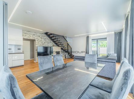 Nabízíme k prodeji nadstandardní dvoupatrový rodinný dům o dispozici 6+kk a užitné ploše 155 m², který se nachází v klidné části obce Zeměchy, v Kralupech nad Vltavou. K domu náleží zahrada o výměře 683 m², garáž a další čtyři parkovací stání. Součástí pozemku je také venkovní bazén. Dům byl zkolaudován v roce 2022 a je vybaven moderními technologiemi – rekuperační jednotkou, podlahové vytápění. Na podlahách jsou vinylové podlahy a dlažba. Vytápění a ohřev vody zajišťuje tepelné čerpadlo v kombinaci s elektrickým bojlerem. V přízemí domu s přímým vstupem na terasu se nachází obývací pokoj s krbem, kuchyňský kout s vestavěnými spotřebiči (indukční varná deska, digestoř, myčka, horkovzdušná a mikrovlnná trouba), dále koupelna se sprchovým koutem a toaletou, pracovna a technická místnost. V patře domu jsou dva dětské pokoje, ložnice, posilovna, koupelna s vanou i sprchovým koutem a vstup na prostornou terasu. Dům je napojen na elektřinu, veřejný vodovod a kanalizaci. Energetická náročnost domu je třída C – úsporná. Zeměchy jsou vyhledávanou, klidnou lokalitou s minimálním dopravním provozem. Centrum Kralup nad Vltavou s veškerou občanskou vybaveností je vzdáleno pouhých 5 minut jízdy autem, vlakem či autobusem. Do centra Prahy se pohodlně dostanete do 30 minut – spoje jezdí pravidelně každých 30 minut po celý den. K nastěhování dle dohody. Pro více informací kontaktujte manažera nabídky.