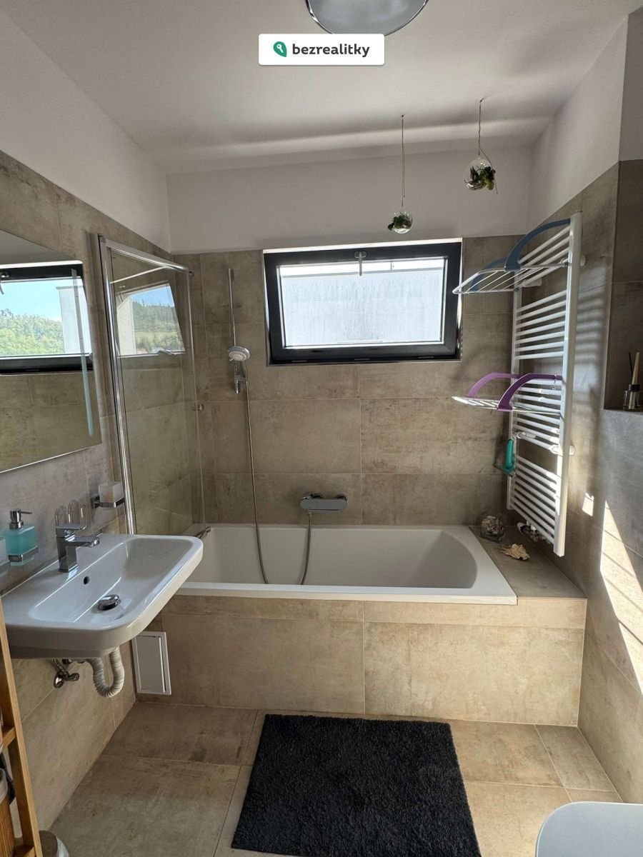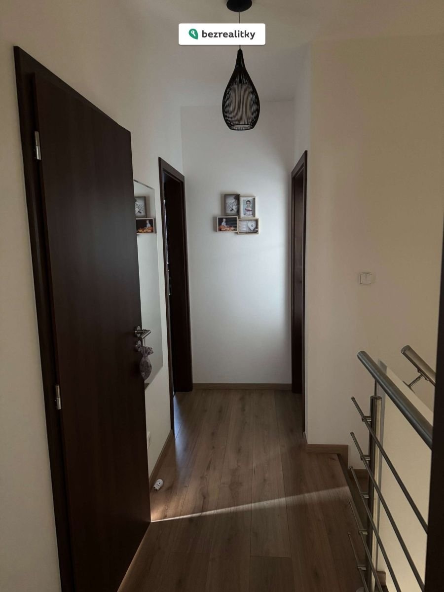 Nabízíme Vám prodej moderního, úsporného, krajového řadového domu 4+kk, který se nachází v nové zástavbě v Králově Dvoře. Jedná se o stavbu montovanou z ocelového systému Festcraft, postavenou v roce 2019. V předsíni domu se nachází velká vestavěná skříň, toaleta a technická místnost pro pračku a sušičku. Obývací pokoj domu je orientovaný na jih se vstupem na terasu a zahradu. Na druhou stranu je orientována kuchyň s kuchyňskou linkou. Linka je plně vybavena vestavěnými spotřebiči, indukční deskou, troubou, mikrovlnou troubou, myčkou a ledničkou. Vedle schodiště do patra je další technická místnost - spíž. V patře domu se nachází ložnice s velkou vestavěnou skříní, dva dětské pokoje a koupelna s toaletou. Objekt je vytápěn úsporným podlahovým vytápěním Gaboterm, druhý zdroj vytápění zajišťují krbová kamna, umístěná v obývacím pokoji. Podlahy domu jsou plovoucí. Na terasovitém pozemku je příprava na dřevěný zahradní domek, dva plechové zahradní domky a terasa s pergolou. Před domem se nachází dvě parkovací stání, která jsou na vlastním pozemku. Dům se nachází v klidné slepé ulici – bez hluku z dálnice s výhledem na dominantu kraje horu Děd. V okolí je veškerá občanská vybavenost. OC Králův Dvůr je cca 10 minut chůze. Výborná dostupnost na dálnici D5. Dojezd na Zličín 20 minut. Nedaleko domu se nachází autobusová zastávka MHD a oplocené dětské hřiště. RK prosím nevolat!!! Tato nemovitost je určena výhradně přímým zájemcům o koupi. Na inzerát můžete také reagovat přímo na webu Bezrealitky.