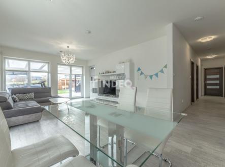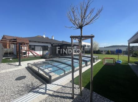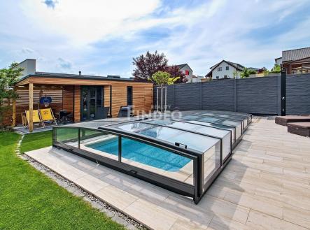 Tímto si Vám dovoluji nabídnout dům, který je situován v klidné ulici na okraji nové zástavby rodinných domů. Jedná se o samostatně stojící pasivní dům typu bungalow, jehož energetická náročnost se řadí do té nejekonomičtější třídy „A“, což Vám zajistí výrazné snížení nákladů na bydlení. Dům je dispozičně řešen jako 4+kk s technickou místností, kterou je navíc možné využít jako pracovnu, případně po úpravách přestavět na další samostatný pokoj. Dům má celkovou obytnou plochu 105,32 m2. Dominantou domu je světlý a prostorný obývací pokoj s přímým vstupem na terasu a do zahrady. Kuchyňský kout je od obývací části opticky oddělen jídelnou a barem a je zde k dispozici velká kuchyňská linka se všemi vestavěnými spotřebiči. V domě se dále nachází ložnice rodičů, dva dětské pokoje, technická místnost, v které je prostor i na případnou pracovnu. V případě, že by někomu chyběl pokoj, je možné technickou místnost přestavět na další pokoj, což měli současní majitelé v plánu. Praktická dispozice poskytuje dostatek soukromí rodičům i dětem.V domě je dále k dispozici prostorná koupelna se sprchovým koutem a vanou, samostatné WC, předsíň a chodba. V technické místnosti a předsíni jsou k dispozici velice prostorné vestavěné skříně. V celém domě je podlahové vytápění s termostatem v každé místnosti. V obývacím pokoji je příprava na krbová kamna. Dům byl kolaudován v prosinci 2014. Při výstavbě bylo využito těch nejmodernějších technologií, s důrazem na soběstačnost a velmi nízké provozní náklady. Vytápění bazénu je zajištěno samostatným tepelným čerpadlem. Bazén, o rozměru 6×3 m, byl vybudován v roce 2021 a je od společnosti Desjoyaux Jedná se o bazén s betonovou konstrukcí s protiproudem a je téměř bezúdržbový. Kolem celého bazénu je použit protiskluzový materiál Travertin, který nejen neklouže, ale v letních měsících nepálí. Samozřejmostí je zastřešené bazénu. Ve všech oknech domu jsou předokenní rolety, které Vám zajistí, aby se dům v letních měsících neohříval a zároveň Vám plní bezpečnostní funkci, která je podpořena všude přítomným alarmem. Atraktivitu domu podtrhuje nádherně udržovaná zahrada se vzrostlou vegetací. Její kondici zajišťuje zavlažovací systém, který je zvlášť na trávník a na stromky a keře a vodu čerpá z detekční nádrže na dešťovou vodu. Proto se nemusíte obávat zbytečných nákladů za zalévání záhonů a udržení stále zeleného trávníku. Pro kutily anebo pro úklid dětských hraček, slouží prostorný zahradní domek. Pomyslnou „třešničkou“ je terasa. Orientace na jih, nádherný výhled, absolutní soukromí, dostatek místa na posezení s přáteli např. u grilovačky a v nepřízni počasí možnost se ukrýt v zastřešené části. Absolutní idylka, které žádný zájemce neodolá. Více informací na www.dumuberouna.cz