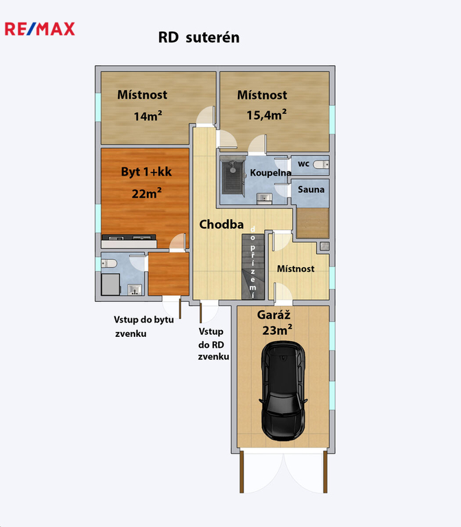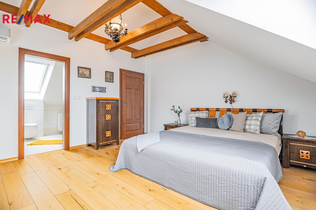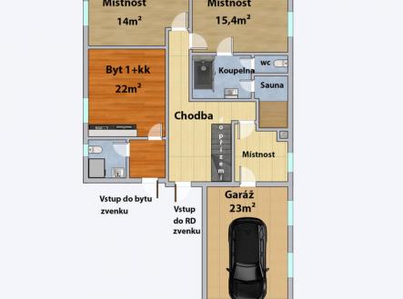Exkluzivně nabízíme dvougenerační rodinný dům s celkovou plochou 240 m2 s venkovní vířivkou, rozlehlou terasou a zahradou 673 m2 v malebné časti města Králův Dvůr u Berouna. Jedná se o prostorný dům o dispozici 5+kk 202 m2 a bytové jednotky 1+kk 26 m2 se samostatným vstupem zvenku. Popis nemovitosti: Světlý suterén obsahuje saunu, relaxační zónu, 3 technické místnosti, a přímý vstup z garáže i zvenku. V přízemí je umístěn obývací pokoj s kuchyní, krbem a přístupem na terasu. V patře je klidová zóna tvořená 3 ložnicemi a koupelnou. Jedna ložnice má přístup na balkon. Tento dům je ideální volbou pro rodiny hledající komfortní bydlení s možností relaxace v soukromí. Dům je klimatizovaný, vytápěni domu zajištěno plynovým kotlem. Garáže 23 m2 + kryté parkovací stání poskytuje pohodlné parkování i v nepříznivém počasí. Objekt je napojený na veřejný vodovod a obecní kanalizaci. V okolí je veškerá občanská vybavenost, včetně škol, obchodů a zdravotnických zařízení. Neváhejte a přijďte se podívat na tento skvělý dům, který nabízí komfortní a klidné bydlení v atraktivní lokalitě.