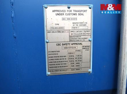 K pronájmu kontejner, který je umístěn v areálu bývalých železáren v Králově Dvoře, lokalita Karlova Huť, v ulici Tovární. Příjezd je po obecní zpevněné komunikaci, vjezd přes bránu s vrátnicí a 24 - hodinovou ostrahou objektu. Jedná se o lodní kontejner ve výborném stavu, rozměry: 40 HC 12,19 m x 2,44 m, výška 2,89 m. Vhodný na uskladnění zboží, materiálu atd. Volný ihned. Více informací u makléře.