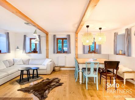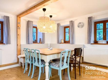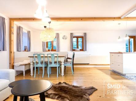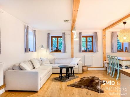K prodeji nabízíme útulnou, moderní a plně vybavenou chalupu, která je ideálním místem pro celoroční rekreaci nebo trvalé bydlení. Chalupa byla navržena tak, aby zajišťovala pohodlí a bezstarostnost bez limitu délky pobytu a ročního období. Malá vesnička Krásný Les s necelými pěti sty obyvateli se nachází ve Frýdlantském výběžku, který z jihu lemují Jizerské hory a na západě, severu i východě je ohraničen česko-polskou státní hranicí. Město Frýdlant se nachází necelých 5 km daleko a je správním střediskem celého této lokality. Blízkost města poskytuje dnes již nezbytné materiální zabezpečení pro klidnou a pohodovou dovolenou - supermarkety s víkendovým provozem, restaurace, obchody a nebo třeba lékařská pohotovost. Přízemí: V přízemí domu najdete obývací prostor s kuchyní, velkým jídelním stolem a relaxační zónou u krbových kamen. Kuchyň s ostrůvkem je vybavena indukční varnou deskou, horkovzdušnou troubou, mikrovlnou troubou, kombinovanou chladničkou a myčkou nádobí s chytrým režimem. Myčka po domytí automaticky sama otevře, což zajistí, že vaše nádobí bude suché a připravené k použití při vašem dalším návratu. Centrální prostor je bočními dveřmi velmi prakticky propojen se zahradou v místě, kde se v ní nachází koupací sud. Ze společné místnosti vedou schody do obytného podkroví. Pro hosty je v přízemí k dispozici samostatné WC, které se nachází hned u vstupní chodby. Spodní ložnice s vlastní koupelnou a toaletou je ideálním zázemím pro rodiče nebo hostitele. Samotná ložnice je vybavena velkou manželskou postelí a nikou využitou jako odkládací prostor pro oblečení. Koupelna s klenutými stropy a se zvoleným designem působí velmi přívětivě a decentně. Vybavena je dostatečně prostorným sprchovým koutem, dvěma umyvadly, prostorem pro pračku a technickým zázemím domu (úpravna vody, bojler, elektrický kotel). Podkroví: Hlavní ložnice v podkroví je se svými cca 22 m2 největší ložnicí v celém domě. Jako ve všech ostatních je i zde manželská postel, volně stojící šatní skříň a psací stůl. Druhé dvě ložnice jsou menší, ale i tak se svými cca 14 m2 poskytnou útočiště i pro dvě osoby. Dle potřeby se dají ze všech postelí v místnostech vytvořit jednolůžka. Koupelna se sprchou a toaletou je na tomto patře umístěna uprostřed a je stejně dobře dostupná z každé z ložnic. Na podestě je vestavěna prostorná úložná komoda. Stejně jako v přízemí i zde jsou krásné dřevěné podlahy, elegantně skrytá dálkově ovládaná ledková světla a nebo okna opatřená vnitřní zatemňovací roletkou. Majitelé si zde při přestavbě nechali udělat i přípravy pro klimatizace do všech jednotlivých ložnic. Doposud jim však v létě pro ochlazení postačovalo přirozené zastínění domu vzrostlou zelení. Zahrada: Zahrada o své celkové ploše disponuje 2072 m2. Zastavěná plocha domem pak činí dalších 104 m2. Jedná se tedy o velmi prostorný pozemek i pro případnou satelitní stavbu. K tomu vybízí i skutečnost, že zadní zahrada s vlastní studnou je vedena jako oddělená parcela a nachází se na ní ještě zákres dnes již bývalé chalupy. Zahrada kolem domu je příjemně rovinatá a plná zeleně. Na dům navazující patio s venkovním sezením je zastíněné majestátním jasanem a v zahradě jsou solitéry dalších stromů, keřů a vytvořené hezké zahradní kulisy. Při hranici pozemku protéká místní potok Řasnice a propůjčuje tak místu jedinečnou atmosféru. V zahradě naleznete také mnoho dalšího praktického, jako jsou venkovní kohouty na vodu pro zálivku zahrady, venkovní zásuvky na elektřinu, hot tube s vířivkou a nebo třeba již zmíněné patio s venkovním posezením. Technické vybavení a zázemí: Nepodsklepená převážně kamenná stavba obdélníkového půdorysu cca 13,5 m x 7,5 m původně pochází cca ze začátku 20 stol. Dům má č.e. a je v KN veden jako objekt pro rodinnou rekreaci. Opatřen je sedlovou střechou se šablonou imitující břidlici. Okna jsou dřevěná s izolačními dvojskly s vysokou odolností proti rozbití. Vodu poskytuje vlastní studna s úpravnou pro zajištění její odpovídající kvality. Splašková voda je řešena tříkomorovým septikem s drénem uloženým v zahradě. Vytápění je elektrokotlem a krbovými kamny s teplovodním výměníkem - vedeno do radiátorů. O ohřev TUV se stará 200 litrový elektrický bojler. Klimatizace je v podkroví předpřipravená infrastrukturou ve všech ložnicích. Elektřina je 230V a 400V. Internet je vedený vzduchem (optika se již prý chystá). Garáž/dílna slouží jako úložný prostor všeho potřebného k údržbě zahrady, a na sezonní sportovní vybavení, kterého si tady můžete užít opravdu dosyta - kola, lyže, běžky... atd. Po dohodě mají současní majitelé přístup na nedaleké sportoviště v zázemí místní školky. Tenisový kurt, hřiště na malou kopanou, venkovní stolní tenis, dětské prolézačky, pískoviště, to vše je na dosah ruky. Toto, v kombinaci se širokou škálou lokálních možností letních a zimních outdoorových aktivit, dělá z nabízené chalupy opravdu multifunkční a 100% celoročně využitelnou nemovitost. Děkuji a budu se těšit na setkání. J.Č.