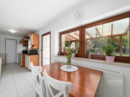Soccer Reality vám zprostředkuje k prodeji prostorný rodinný dům o dispozici 5+1 v obci Křečkov, jen 3 km od Poděbrad. Dům se nachází na klidném místě na konci obce, za zahradou se rozprostírá ořechová alej a potok, což zajišťuje soukromí a příjemné prostředí. Celková užitná plocha domu je 150 m², navíc je k dispozici zastřešená terasa o velikosti 24 m² a krásná zahrada o rozloze 1.052 m². Nemovitost byla postavena v 60. letech a v roce 2005 prošla rozsáhlou rekonstrukcí. V roce 2019 byla dokončena půdní vestavba a nástavba nad částí domu. Dům je zděný a suchý, se střechou z betonové tašky KM-Beta a novými krovy z let 2017–2019. V přízemí o rozloze 80 m² se nachází předsíň, chodba, technická místnost, kuchyně s jídelnou, obývací pokoj, ložnice, pracovna a koupelna s vanou, sprchovým koutem a WC. Z jídelny je přímý vstup na zastřešenou terasu s pergolou, odkud vede cesta do okrasné i užitkové zahrady. Podkroví o výměře 70 m² nabízí velkou otevřenou halu, dvě ložnice, koupelnu se sprchovým koutem a WC a komoru. Sklep má 12 m². Dům je vybaven dřevěnými EURO okny, v přízemí je dlažba s podlahovým topením, v patře pak plovoucí laminátová podlaha Quickstep. Vytápění zajišťuje nový elektrokotel z roku 2024, v patře jsou instalovány dekorativní kamenné topné panely Geme-therm, alternativně lze využít krbová kamna Haas+Sohn v obývacím pokoji. Ohřev vody zajišťují dva bojlery – jeden ve sklepě a druhý v podkroví. Dům je napojen na veřejný vodovod a kanalizaci, k dispozici je plynová přípojka (aktuálně nevyužívaná) a vlastní studna s pitnou vodou. Dům je zateplen, část fasády byla nově dokončena v roce 2024 a 2025. Součástí prodeje je garáž, dílna, dvě kůlny, dřevník a letní kuchyně s komínem. Parkování je zajištěno v garáži, pod krytým stáním i před domem, kde jsou dvě stání ze zámkové dlažby. Zahrada je částečně okrasná a částečně užitková. Obec Křečkov nabízí dobrou občanskou vybavenost – základní školu pro první stupeň, dvě školky (včetně soukromé dětské skupiny), obchod, hospůdku, fotbalové hřiště a dětská hřiště. Dopravní dostupnost je výborná – do Poděbrad i Nymburka se pohodlně dostanete autobusem, vlakové spojení je v nedalekém Velkém Zboží. Do Prahy (Černý Most) se dostanete za 35 minut a do Mladé Boleslavi za 45 minut. Tento dům je ideální pro rodiny, které hledají klidné místo k bydlení s výbornou dostupností města a možností užívat si vlastní zahradu a přírodu hned za domem. Nemovitost můžete financovat hypotečním úvěrem.