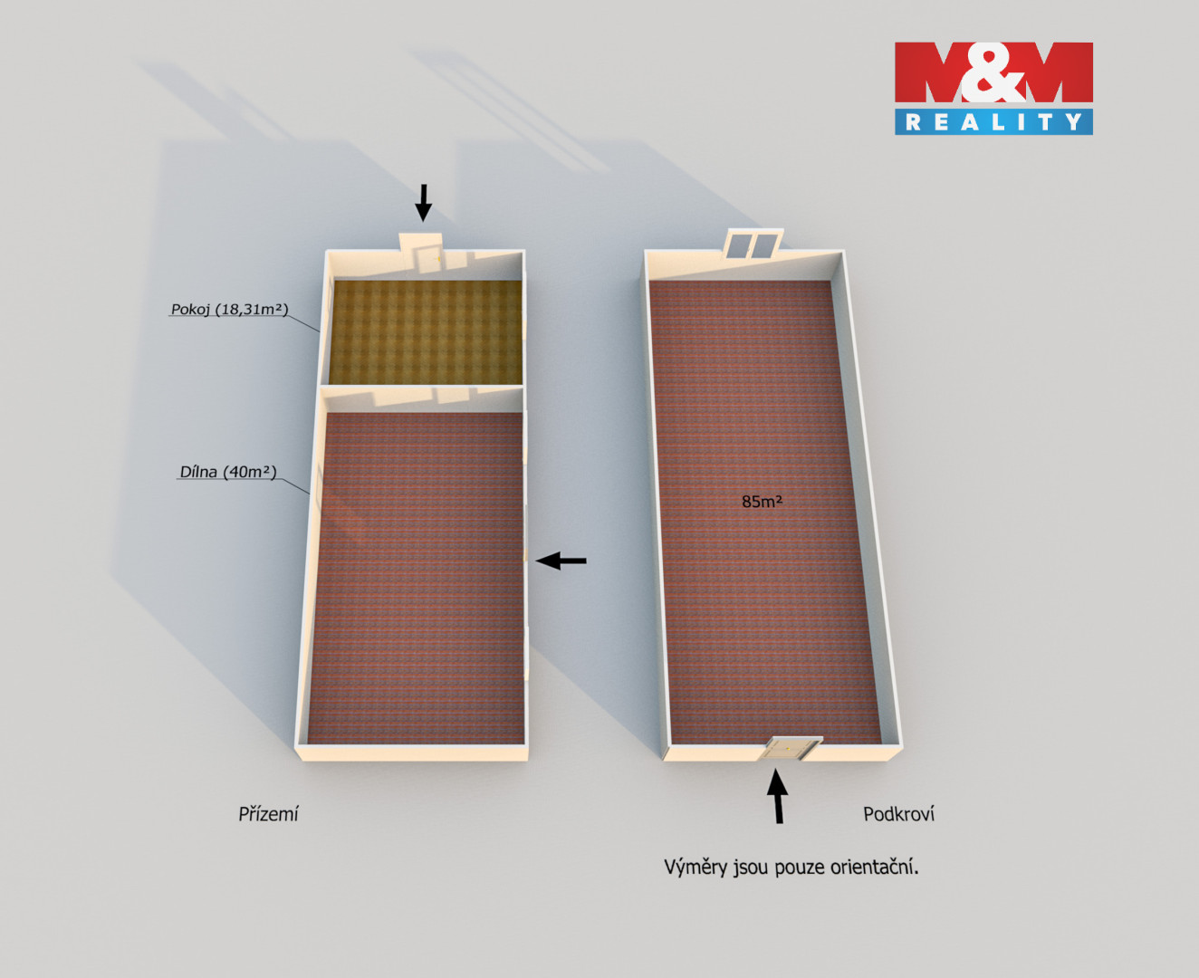 Nabízíme k prodeji rodinný dům v obci Pakoslav u Úněšova situovaný na pozemku o výměře 1 538 m² s možností rozšíření o dalších 470 m². Dům je určen k rekonstrukci dle vlastních představ. Dispozičně nabízí vstupní chodbu, obytný pokoj, koupelnu s WC, sklep a půdu připravenou k vestavbě 2-3 dalších pokojů. Dům je z poloviny podsklepen, napojen na vodu z nového vlastního 70m vrtu s vodárnou, odpad řešen septikem. Velkou přidanou hodnotou nemovitosti je samostatná a prostorná hala o ploše 220 m², která nabízí široké možnosti využití – od garážování více vozidel, přes dílnu či hobby prostor až po drobné podnikání. Hala je vybavena novými vjezdovými vraty o rozměrech 4×5 m, kompletně novou elektroinstalací 230/380 V, LED osvětlením, alarmem a zázemím včetně kanceláře. Vytápění je řešeno kamny na dřevo, přičemž dřevo na dvě topné sezony je součástí ceny. Na pozemku je i další stavba, kde lze realizovat další záměr nebo bydlení. Více informací a domluva prohlídky u makléře.