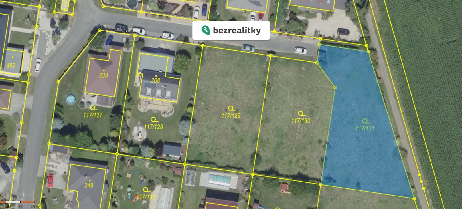 Nabídka prodeje stavebního pozemku č. 117/131 o výměře 1108 m2 v ulici Příčná v katastru obce Křenice, okres Praha východ. Pozemek je určený k výstavbě rodinného domu o jedné bytové jednotce, výstavbu lze zahájit okamžitě. Jedná se o jeden z posledních volných pozemků v lokalitě zastavěné novými rodinnými domy, což z něj činí pozemek exkluzivní. - Napojení na veškeré inženýrské sítě: voda, tlaková kanalizace, elektřina a plyn. - Přístřešek napojení inženýrských sítí s prostorem pro uložení nádob domovního odpadu. - Základy pro plot v uliční čáře daného pozemku. - V lokalitě jsou vybudovány příjezdové asfaltové komunikace včetně integrovaných chodníků. Pozemek má ideální pravidelný obdélníkový tvar a jeho výměra umožňuje nejen postavit dům, ale také kolem něj založit optimálně velkou zahradu. Dle územního rozhodnutí je zastavitelnost pozemku 30%. Pozemek je rovinatý, porostlý travou. Dopravní obslužnost obce systémem Pražské integrované dopravy - zastávka BUS v docházkové vzdálenosti. V obci je k dispozici školka, obchod s potravinami a smíšeným zbožím, restaurace, obecní úřad, fotbalové a dětské hřiště. V nedalekých Průhonicích, Újezdu nad Lesy, Říčanech či Praze - Uhříněvsi se nachází mnoho supermarketů či další občanské vybavenosti. Lokalita nabízí klidné bydlení s možností aktivního trávení volného času, s dobrou dopravní dostupností a to vše na dosah hl. města Prahy. Tato nemovitost je určena výhradně přímým zájemcům o koupi. Na inzerát můžete také reagovat přímo na webu Bezrealitky.