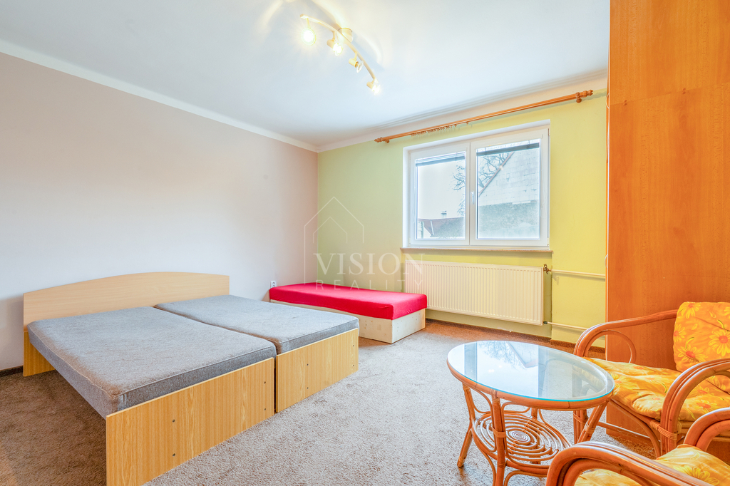 Nabízíme k prodeji rodinný dům v obci Křenovice u Milevska, okres Písek. Dvoupodlažní zděný dům se nachází na prostorném pozemku o celkové výměře 2 062 m², který poskytuje dostatek soukromí, klidu i možností dalšího využití. Zastavěná plocha domu činí 363 m², užitná plocha je 175 m². Nemovitost je v dobrém a udržovaném stavu a nabízí velmi praktické dispoziční řešení. V přízemí domu se nachází vstupní chodba, samostatné WC, kuchyně, ložnice a dva dětské pokoje. Druhé nadzemní podlaží disponuje ložnicí, obývacím pokojem, kuchyní, koupelnou a samostatným WC, což umožňuje pohodlné bydlení i vícegenerační využití. Velkým benefitem je půdní prostor, který nabízí možnost rozšíření obytné plochy dle vlastních představ. Vytápění domu je zajištěno kotlem na tuhá paliva, ohřev teplé vody pomocí elektrického bojleru. Voda je řešena kopanou studnou, odpad je sveden do septiku s přepadem do trativodu. Součástí nemovitosti je také rozsáhlá stodola, která představuje výrazný investiční potenciál – lze ji využít jako podnikatelský prostor, dílnu, sklad nebo ji přestavět na další obytnou část. Na pozemku se dále nachází oddělený sklep, ideální pro skladování, archivaci nebo hospodářské využití. Obec Křenovice u Milevska se nachází v klidné a příjemné lokalitě obklopené přírodou, ideální pro rodinné bydlení i rekreaci. Do Milevska se dostanete za cca 10 minut, do Písku přibližně 20 minut jízdy, přičemž obě města nabízejí kompletní občanskou vybavenost. Obec má autobusové spojení, okolí je vhodné pro procházky, cykloturistiku a další volnočasové aktivity. Lokalita nabízí harmonické spojení klidu venkova s výbornou dostupností městských služeb. Pro více informací nebo sjednání prohlídky neváhejte kontaktovat makléře.