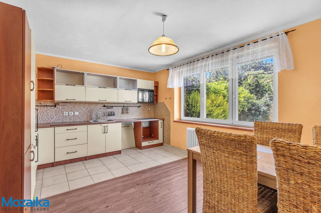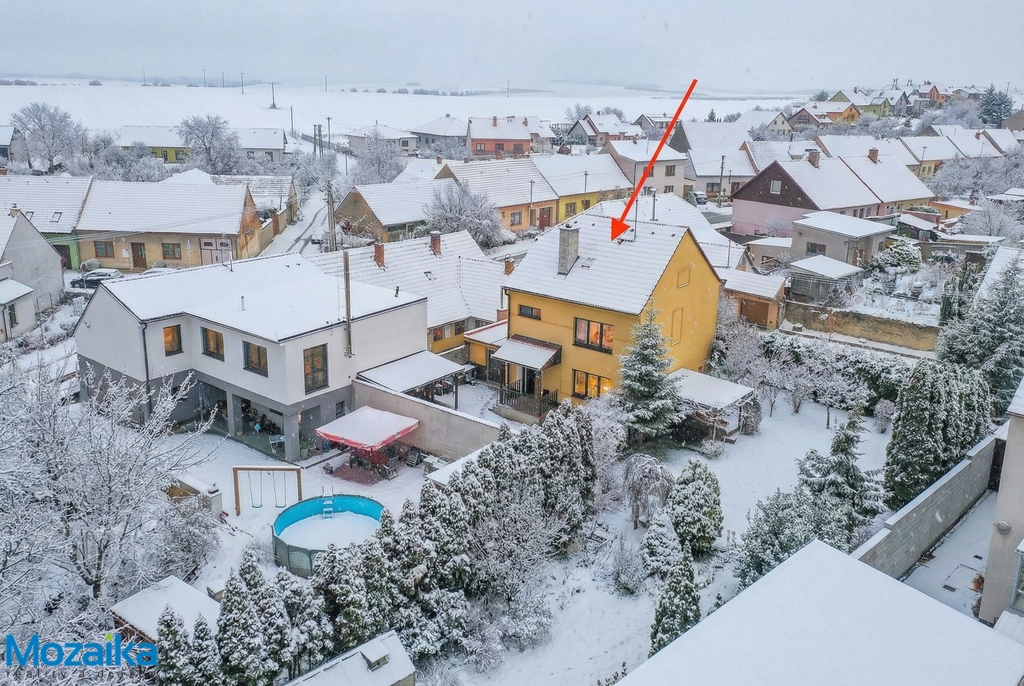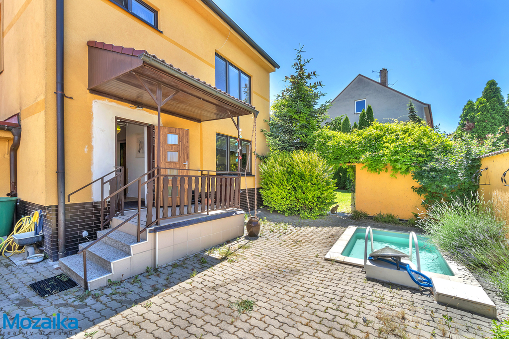 Rodinný dům s duší, nádhernou zahradou a bazénem – klidné bydlení v Křepicích u Hustopečí, kousek od Brna. Hledáte místo, kde si vy i vaše rodina opravdu odpočinete ? V klidné vinařské obci Křepice, jen pár minut od Hustopečí a s výborným napojením na dálnici D1 do Brna, nabízíme prostorný cihlový rodinný dům se zahradou jako z pohádky, garáží, sklepem a zapuštěným bazénem. Co vás čeká ? Dům kolaudovaný v roce 1989 prošel v roce 2010 důkladnou rekonstrukcí – došlo k zateplení, výměně oken za plastová, zbudování půdní vestavby s VELUX střešními okny, která vnáší do podkroví denní světlo. Všechna okna mají žaluzie a sítě proti hmyzu. Stavba je z větší části podsklepená , zateplená polystyrenem (10–15 cm). Ve sklepě najdete předsíň, kotelnu s kondenzačním plynovým kotlem BAXI (2020), prádelnu, sklad a technické zázemí s vodárnou napojenou na vlastní studnu a filtrací. Dispozice domu: • Přízemí: vstupní chodba, kuchyně, obývací pokoj, WC • 1. patro: tři pokoje (jeden s lodžií), koupelna s vanou • Podkroví: prostorná ložnice s krbovými kamny – ideální jako rodičovské útočiště nebo pokoj pro hosty Topení je řešeno kondenzačním plynovým kotlem s ústředním topením, v podkroví pak krbovými kamny pro útulnou atmosféru. Dům je napojen na elektřinu (220/380 V) a plyn. Voda je čerpána z vlastní studny s dostatečnou kapacitou a výbornou kvalitou. Odpady jsou svedeny do jímky, ale veřejný vodovod i kanalizace jsou k dispozici přímo u pozemku (projekt na připojení je schválen). Exteriér – soukromí a zelený ráj: Za domem se nachází dlážděný dvorek s krytým posezením, králíkárnou a zapuštěným bazénem s pískovou filtrací (2 × 3 m, hloubka 80 cm). Odtud vstoupíte do dechberoucí zahrady, která je díky zdem a zeleným stěnám naprostým soukromým útočištěm. Najdete zde: • vzrostlé stromy (cedry, korejské jedle, ovocné stromy a keře – meruňky, broskve, hrozny, maliny) • jezírko s filtrací – hluboké přes 1 metr, vhodné i pro ryby v zimě • zastřešenou pergolu (5 × 2 m) pro grilování nebo relax • skleník s automatickou závlahou, zahradní domek na nářadí a ohrádku pro slepice Kromě garáže u domu máte i prostornou branku do ulice ze zahrady – ideální pro příjemné procházky po okolí, nebo třeba složení dřeva pro krbová kamna. Lokalita: Křepice jsou živá vinařská obec na okraji Pálavy, jen pár minut od Hustopečí. Nabízí kompletní občanskou vybavenost – školu, školku, kulturní dům (mnoho zájmových akcí), knihovnu, organizace (mateřské centrum, skauti, kynologický klub, hasiči), poštu, hřiště, tenisové kurty, obchod, večerku i, řemeslníky (autoservis, kadeřnictví atd.), pravidelnou hromadnou dopravu (do 40 min. v Brně). Okolní krajina láká k pěší turistice, cyklistice i degustacím místních vín – ideální prostředí pro rodinu i klidný životní styl. Výhodou je rychlý dojezd do Brna, ať už autem nebo MHD. Tento dům je ideálním místem pro ty, kteří hledají komfortní a praktické bydlení s duší, obklopené přírodou, s dostatkem prostoru a naprostým soukromím. Přijďte se přesvědčit osobně – těšíme se na vaši návštěvu.