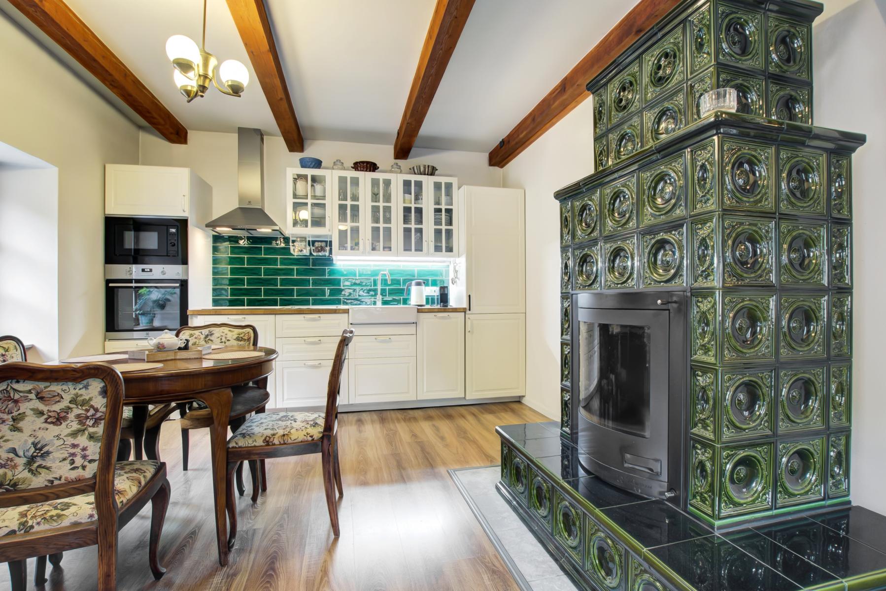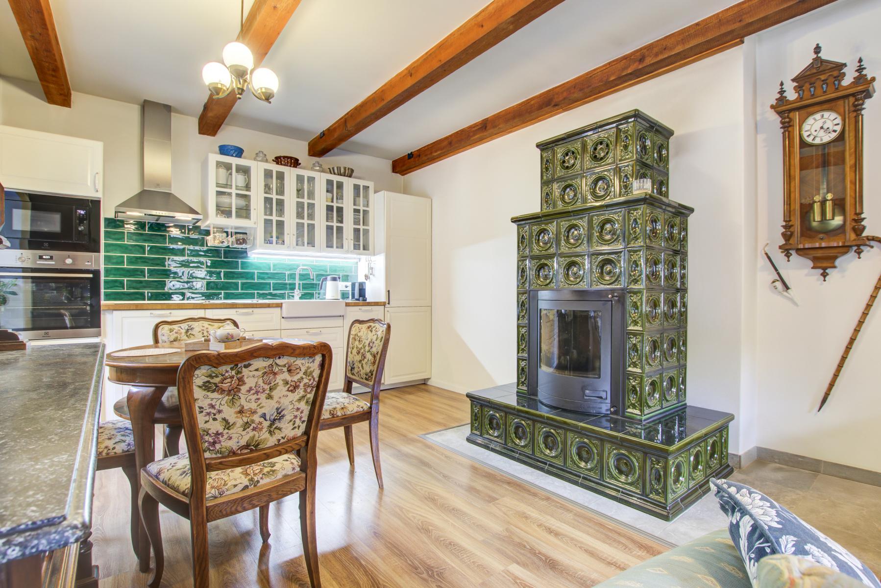Stylové bydlení pod hradem Křivoklát - citlivě zrekonstruovaný dům s výhledem a duší. Nabízíme jedinečnou příležitost ke koupi malebného domu v bezprostřední blízkosti hradu Křivoklát - místa s neopakovatelnou atmosférou a historií. Tato pečlivě zrekonstruovaná nemovitost kombinuje tradiční ráz vesnické architektury s komfortem moderního bydlení a nabízí několik variant využití - pro rodinné bydlení, rekreační objekt, investiční pronájem a restauraci. Dispozice a vybavení: Dům na třech podlažích nabízí útulný interiér s důrazem na detaily, dřevěné podlahy, kvalitní keramiku a prvky zachovávající dobový charakter. K dispozici jsou celkem 3 ložnice, půda, světlý obývací prostor s kuchyňským koutem, moderní koupelna s WC, velký prostor v přízemí s přípravou pro kuchyň, 3x WC, technické zázemí a dostatek úložných prostor. Interiér doplňují dřevěné trámy, stylové dveře a dostatek přirozeného světla díky střešním i klasickým oknům. Exteriér: Zahrada poskytuje možnost relaxace i posezení pod širým nebem. Kamenné terasy, gabionové prvky a zeleň navazují na přírodní charakter okolí. Na pozemku najdete i prakticky řešené venkovní schodiště a úložný prostor na dřevo. Výjimečné umístění: Nemovitost se nachází v obci Křivoklát, v památkové zóně, doslova pár kroků od středověkého hradu. Okolí nabízí nepřeberné možnosti turistiky, cyklistiky a kulturního vyžití. Ráj pro milovníky přírody, historie i romantiky. Technické informace: Na pozemek je přivedena přípojka obecní vody a kanalizace, voda ze studny, kanalizace je svedena do jímky, bojler na vodu je kombinovaný (elektrický nebo s topením). Vytápění domu je dřevem (kachlová kamna s výměníkem, radiátory v 1. patře a podkroví, jedno otopné těleso je v chodbě u vstupu). Prostor v přízemí je vytápěn přes kamna na tuhé palivo. Proč právě tento dům? Výjimečné místo pod hradem Křivoklát Citlivá rekonstrukce s respektem k historii Možnost víceúčelového využití Klid a zeleň v dosahu Prahy