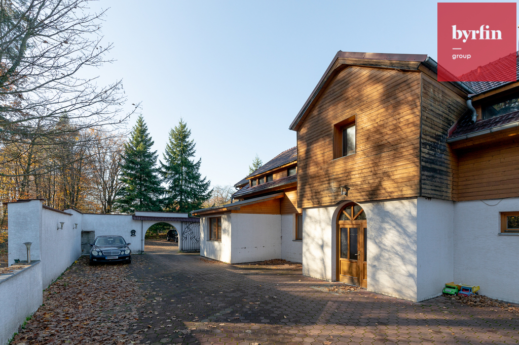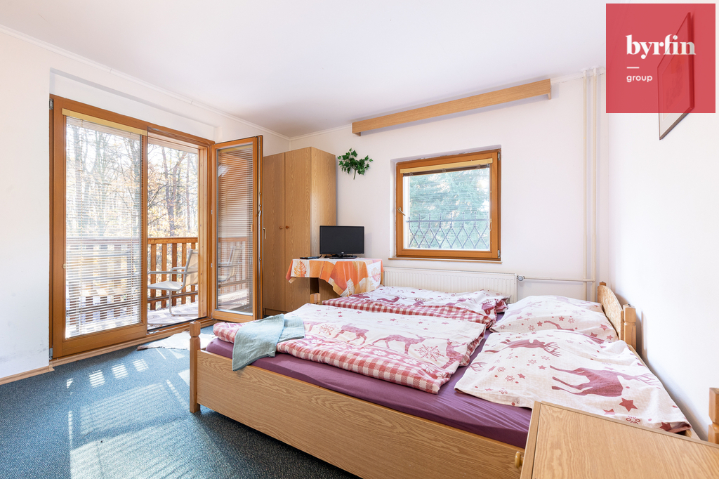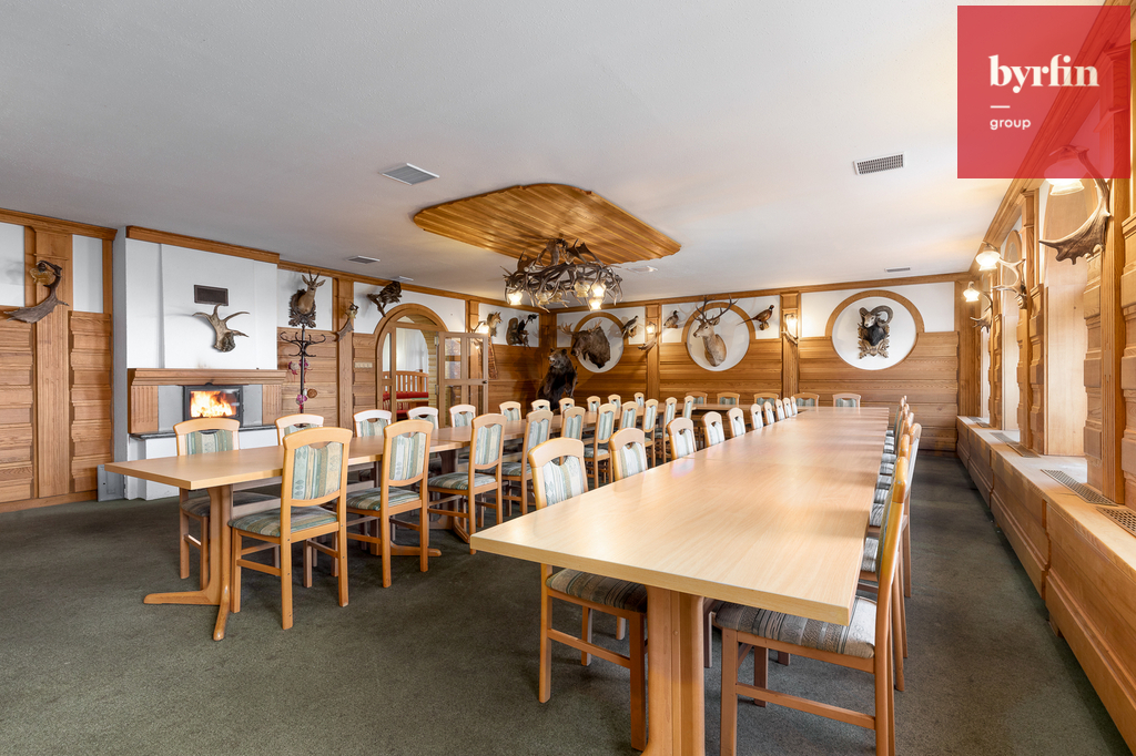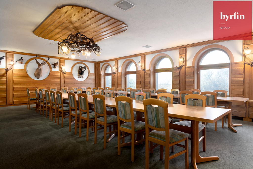 Nabízíme k prodeji rozsáhlý a plně funkční areál penzionu Šelenburk, který spojuje ubytování, gastronomii a mimořádně velké pozemky o celkové ploše 24.962 m². Objekt byl zkolaudován v roce 1996 jako rekreační a turistická chata určená k trvalému užívání a nachází se na samotě, v klidné a vyhledávané části Krnova – Zálesí. Areál tvoří třípodlažní budova s restaurací, ubytovací částí, skladovým a technickým zázemím, dvěma terasami a rozsáhlou okrasnou zahradou. Hlavní část slouží jako restaurace s kompletně vybavenou kuchyní, barem a sociálním zázemím. V 1. patře se nachází 12 pokojů, každý s vlastní koupelnou a WC, aktuálně pronajatých dlouhodobým nájemcům se stabilním příjmem cca 120.000 Kč měsíčně. V podkroví jsou dvě bytové jednotky o velikosti cca 70 m², ideální pro majitele, správce nebo dlouhodobý pronájem. Pozemky o výměře 24.962 m² zahrnují plochy NS-1 (rekreační a sportovní využití) a OK-17 (stavba), což umožňuje výrazné rozšíření provozu. Možné je vybudovat sportoviště, lanové centrum, bike park, sjezdovku, motokrosovou trať, bobovou dráhu, glamping či další rekreační infrastrukturu. Technicky je objekt v dobrém stavu: elektřina v mědi, vlastní vrt 60 m, možnost napojení na vodovodní řad, elektrokotel 30 kW + dřevoplynový kotel Atmos, aktuální revize elektro, komínů a kotlů. Areál je oplocený, udržovaný a připravený k okamžitému převzetí. Nemovitost je ideální pro provozovatele ubytovacích služeb, investora hledajícího stabilní příjem nebo developera plánujícího rekreační či sportovní resort.