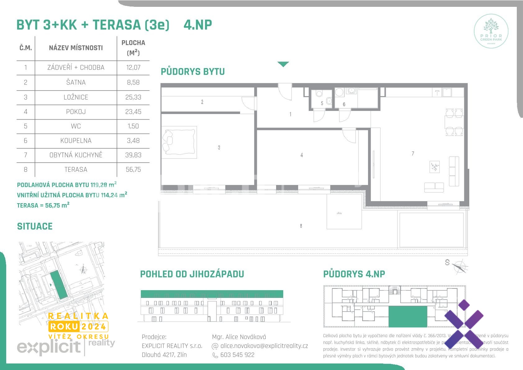 Prodej bytu 3+kk s terasou 119 m², Prior Green Park Kroměříž