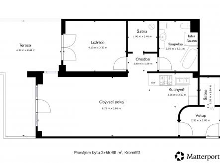 Pronájem bytu 2+kk 69 m², Kroměříž