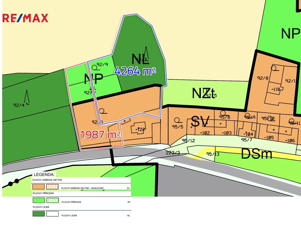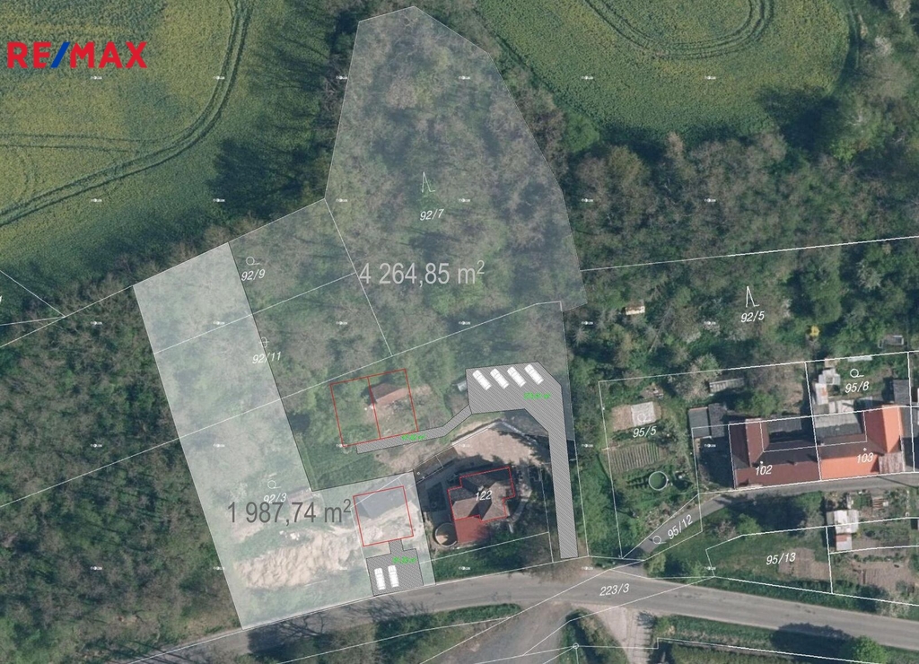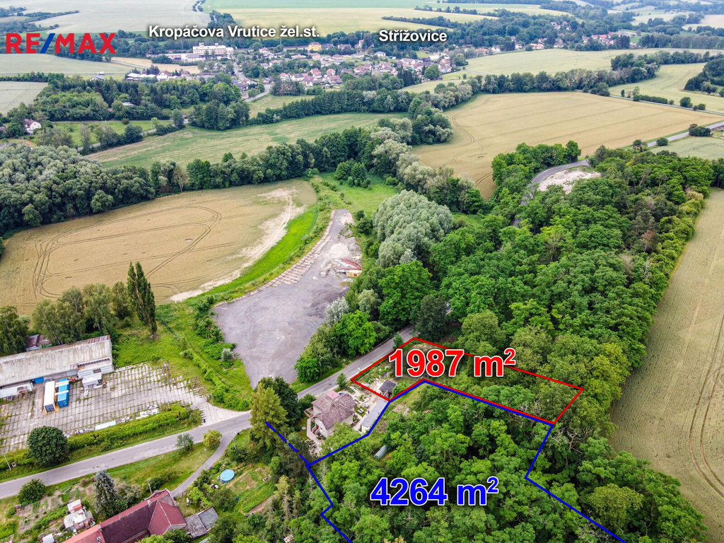 Nabízíme Vám ke koupi pozemek v Kropáčově Vrutici vhodný ke stavbě rodinného domu a využití přilehlého lesa, který je součástí nabídky. Celková výměra budoucího pozemku je cca 4264 m2. Dle územního plánu se část pozemku nachází v zóně "Plochy smíšené obytné - venkovské", část v zóně "Plochy přírodní" a část v zóně "Plochy lesní" (2384 m2). Přípojka elektřiny, vodovodu a kanalizace je na vedlejším pozemku. Pozemek je svažitý směrem k jihu a nabízí se pro originální dům v takovém terénu s možností využití lesa např. pro chov daňků a jiné. Přístup k pozemku bude řešen prodejem podílu na přístupové cestě sousedního domu (naznačeno ve fotografiích čárkovaně). Pro bližší informace mě kontaktujte
