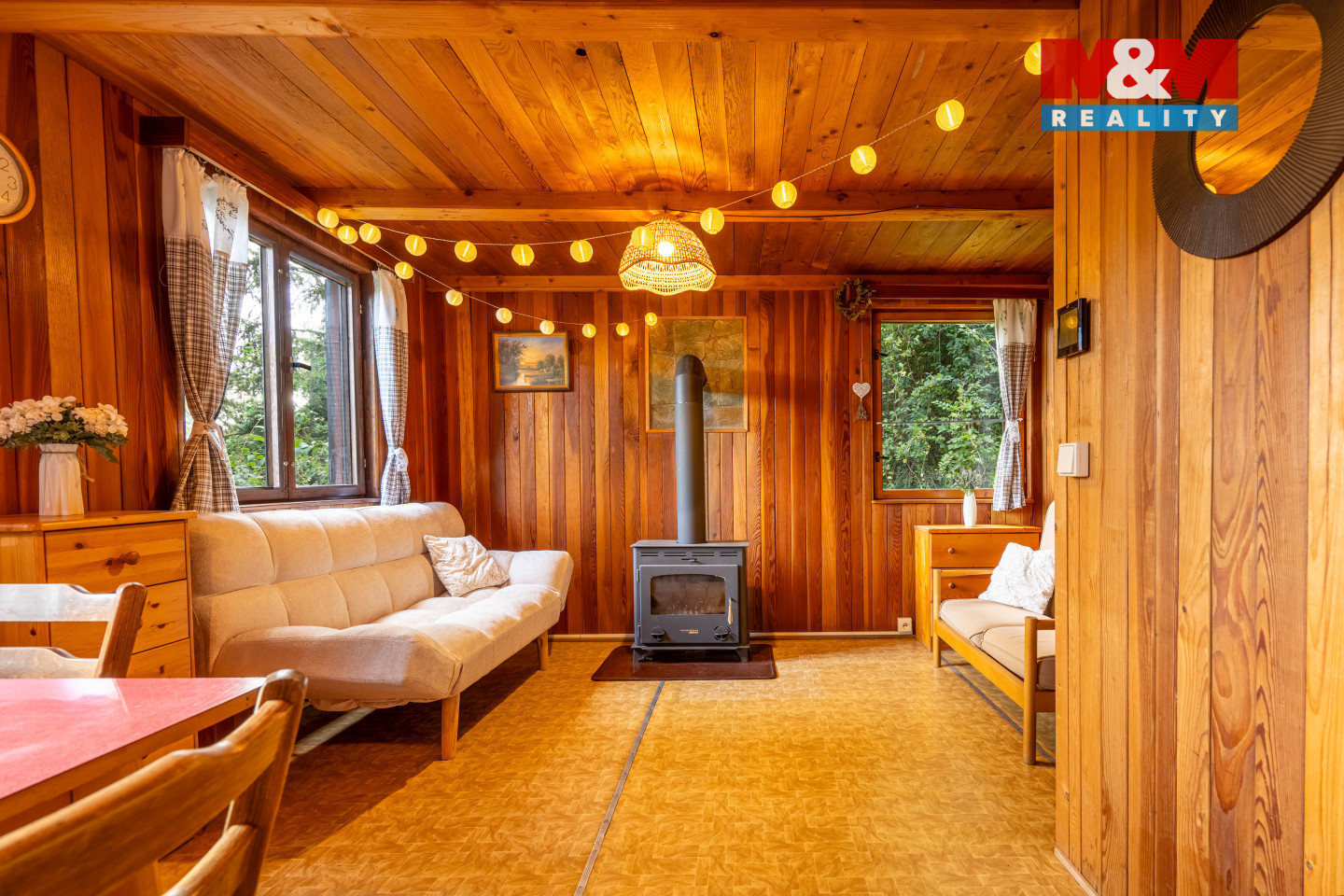 Nabízíme vám ke koupi chatu s krásnou vlastní zahradou v obci Střížovice - Kropáčova Vrutice. Užitná plocha zateplené chaty činí 38,4 m² a nabízí se plně vybavena. Jedná se o stavbu pro rodinnou rekreaci s číslem evidenčním. Plocha celého pozemku činí 1205 m². Vodu zajišťuje vlastní studna, ohřev vody průtokový ohřívač, vytápění stylová krbová kamna v obývacím pokoji. Solární sprcha, toaleta separační, elektřina 220 V i 380 V. Zahrada nabízí příjemné prostředí pro chvilky odpočinku a relaxace. Dále zde nalezneme sklípek, zahradní domek na nářadí, gril s udírnou. Terasa u chaty zaručuje nádherný výhled do okolí. Dojezdová vzdálenost do Prahy 25 min a do Mladé Boleslavi 20 min. Pohodlné spojení vlakem. Pokud hledáte místo, kde můžete uniknout každodennímu shonu a užívat si klidu a krás přírody, tato chata je pro vás ideální volbou. Lze financovat hypotečním úvěrem, s kterým vám rádi pomůžeme. Doporučuji prohlídku této kouzelné nemovitosti.