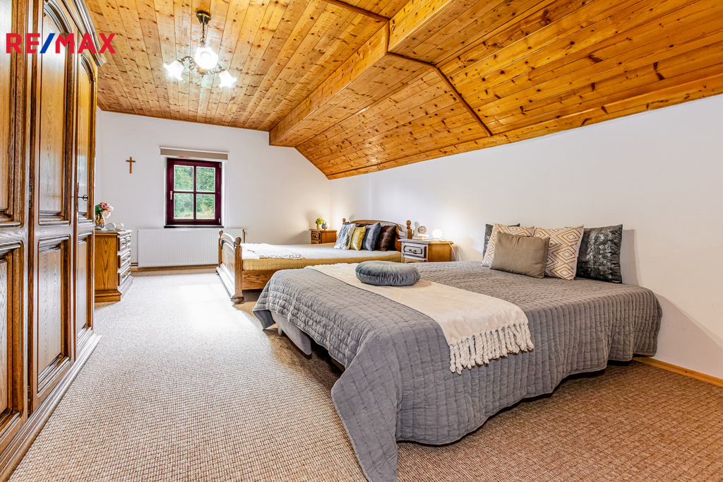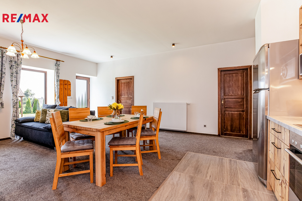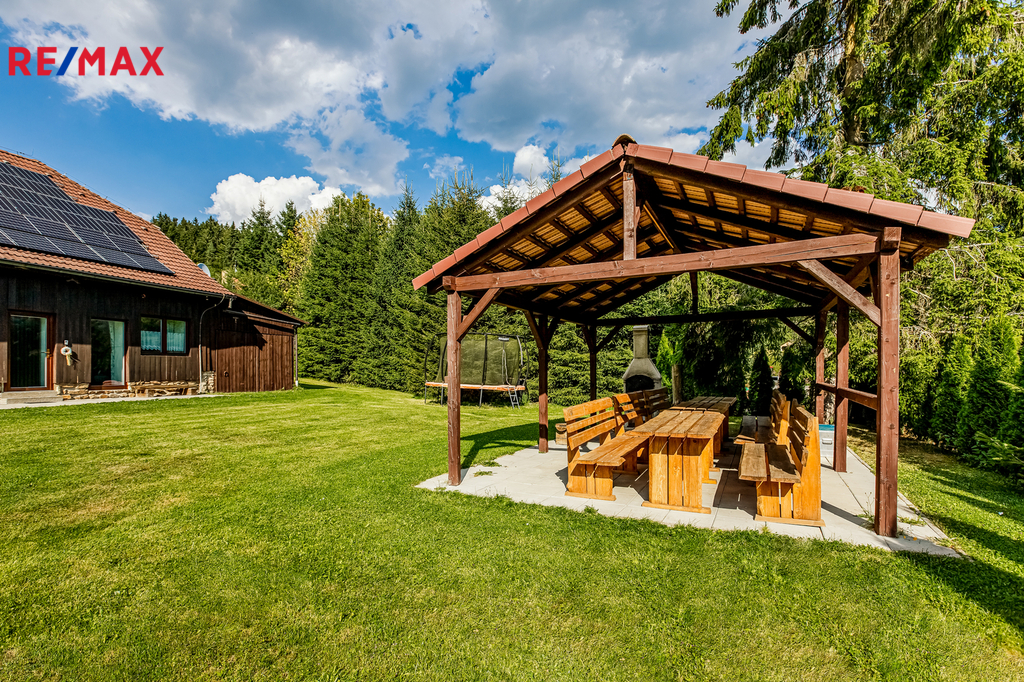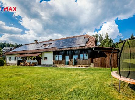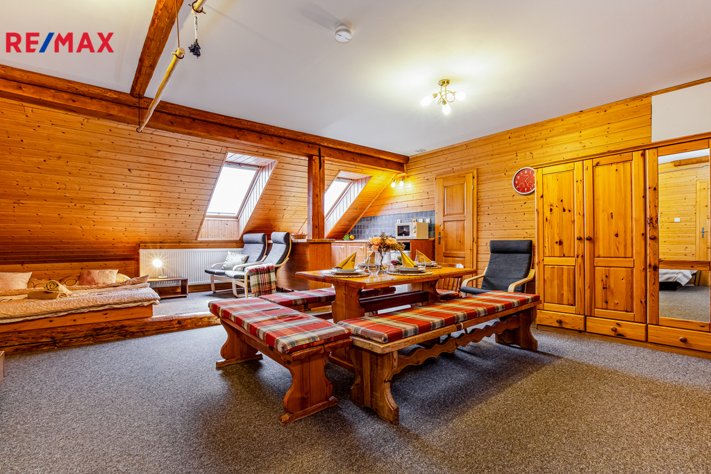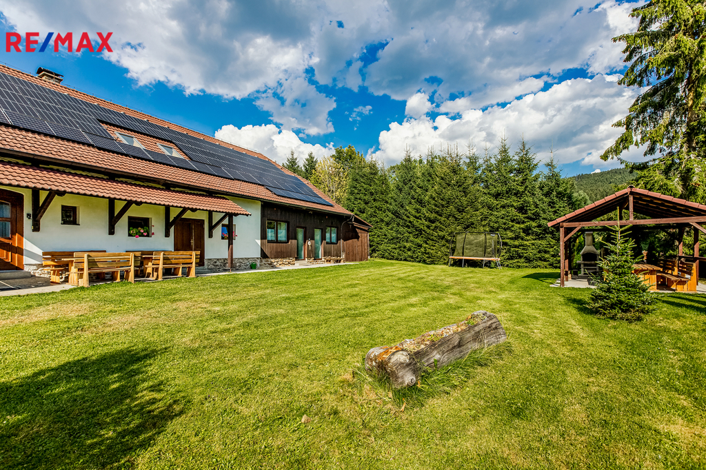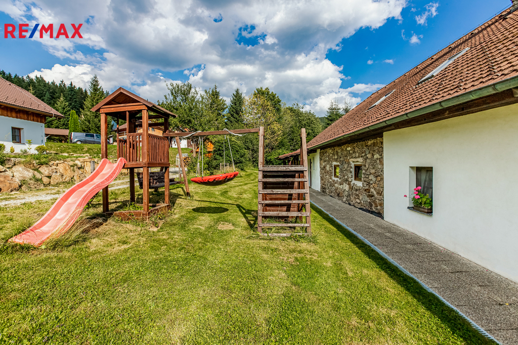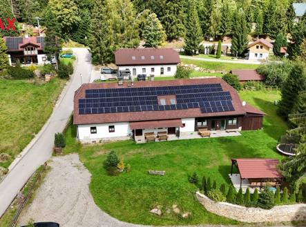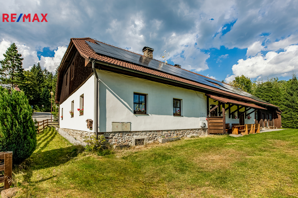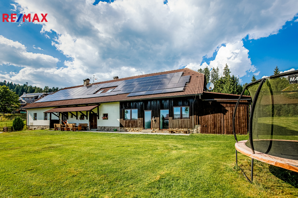 Nabízíme k prodeji zavedený stylový penzion v oblíbené lokalitě Kubova Huť na Šumavě. Objekt po částečné rekonstrukci (2019) nabízí 5 stylově zařízených apartmánů s celkovou kapacitou až 30 lůžek a je připravený k okamžitému provozu bez nutnosti dalších větších investic. Každý apartmán je plně vybavený – nechybí kuchyňský kout, vlastní koupelna a stylový nábytek. Největší apartmán je navržený až pro 10 hostů a disponuje dvěma koupelnami. Technické zázemí pro chod penzionu - pračka, komora pro úklid. Apartmány mají samostatné vchody a poskytují dostatek soukromí. Součástí penzionu je i špičkově vybavená wellness zóna se saunou, vířivkou a relaxačním prostorem, která byla vybudována před 3 lety a zaručuje atraktivitu objektu v průběhu celého roku. K venkovnímu zázemí patří prostorná zahrada s altánem, posezením a grilem, stejně jako dětské hřiště se skluzavkami a houpačkami. Pozemek je rovinatý a bezpečný pro děti i dospělé. Samozřejmostí je parkování přímo u domu a Wi-Fi v celém objektu. Penzion je vybaven moderními technologiemi, které výrazně snižují provozní náklady – vytápění zajišťuje tepelné čerpadlo se zemními vrty, doplněné fotovoltaickou elektrárnou o výkonu 30 kWp. Bezpečnost objektu posiluje kamerový systém. Celková zastavěná plocha činí 546 m² , včetně garáže, lyžárny a kolárny a k dispozici je pozemek o velikosti 2 090 m². Zahrada je dostatečně veliká, aby poskytla všem ubytovaným soukromí. Kubova Huť je oblíbeným cílem turistů díky svému lyžařskému areálu i letním možnostem turistiky, cyklistiky a houbaření. Nedaleký Boubín nabízí jedinečné výhledy, za jasného počasí až na Alpy. Obec je navíc známá i tím, že zde leží nejvýše položená vlaková stanice v České republice. Tento penzion je díky své poloze, vybavení a technickému zázemí ideální investiční příležitostí. Je plně v provozu celoročně, stylově zařízený a připravený k okamžitému využití – ať už jako rekreační objekt pro rodinu, nebo jako výnosná nemovitost s pravidelným příjmem. Výměry jsou orientační. Pro další podrobnosti kontaktujte makléře nabídky.
