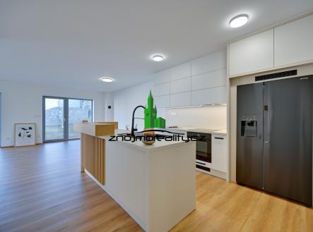 Pokud hledáte novostavbu prostorného rodinného domu v blízkosti Znojma, máme pro Vás nabídku domu v Kuchařovicích, vzdáleného od centra města Znojma 2 kilometry. Tento dům je ideální volbou pro ty, kdo hledají harmonii mezi moderním bydlením a poklidným venkovským prostředím s výbornou dostupností do města. Jedná se o přízemní nepodsklepený dům o zastavěné ploše 202 m2 v řadové zástavbě s průjezdem na uzavřený dvůr a zahradu s absolutním soukromím. Celková plocha pozemku je 525 m2. Dům je zděný a nadstandardně zateplený. Vytápění domu je podlahové s tepelným čerpadlem a s přípravou na fotovoltaiku. V obytném prostoru je i komín pro umístění krbových kamen. Nadstandardně najdeme v domě přípravu na chytrou domácnost od systému SALUS Smart Home, bohaté rozvody elektřiny (včetně instalovaných světel v domě i na zahradě) s rozvody internetu a televize v každé místnosti. Přípravu na osazení garážových vrat z ulice a přívod vody s nezámrzným kohoutem přímo na zahradu. Veškeré srážky ze střech jsou svedeny do retenční nádrže umístěné na pozemku pro další využití na zahradě. Dům je vybaven velkorysou kuchyňskou linkou včetně spotřebičů a zařízenou vstupní halou. Dispozice domu je 4,5+kk, kde hlavním obytným prostorem je spojený obývací pokoj s kuchyní o ploše 55,51 m2. Dům tedy obsahuje navíc 3 ložnice z nichž je možný přímý vstup na zahradu, prostornou šatnu, koupelnu s vanou a sprchovým koutem, další samostatné WC s umyvadlem, technickou místnost a průjezd na pozemek. S ohledem na použité materiály a tepelné izolace při výstavbě je energetický průkaz náročnosti stavby v kategorii B – velmi úsporný. Pokud Vás nabídka zaujala, rád Vás uvidím na prohlídce domu.