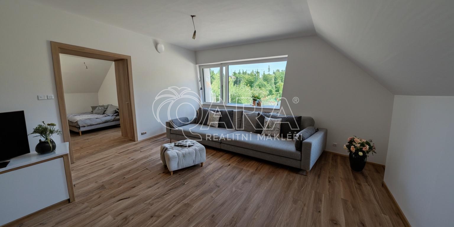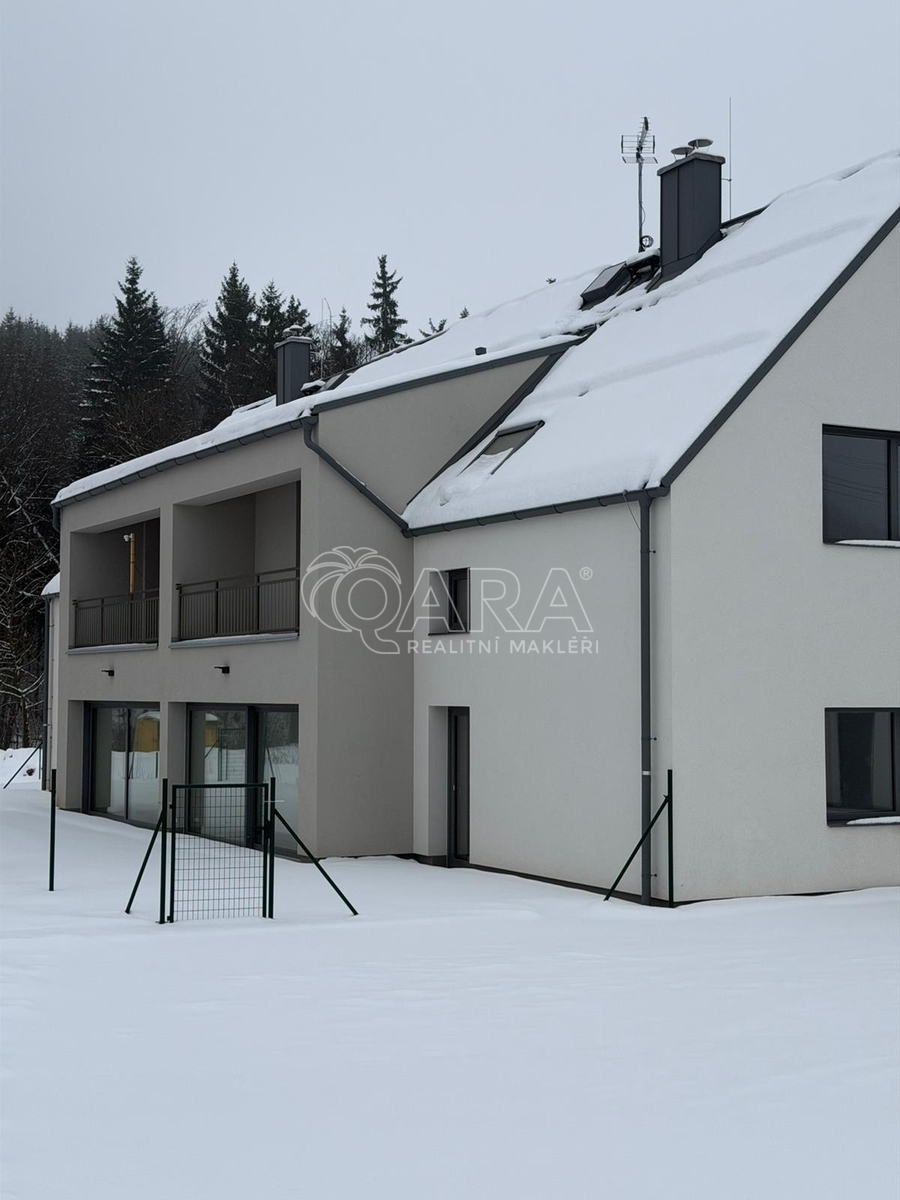 Nabízíme k prodeji moderní a útulný byt 3 + kk 77,2m2 s lodžií 11,4m2 v novostavbě domu v obci Kunčice nad Labem, ideální pro rodiny s dětmi. Nachází se v klidné lokalitě, pouhých 5 minut autem od Vrchlabí, a nabízí jedinečné spojení pohodlí a přírody, s blízkostí lyžařských středisek Herlíkovice a Špindlerův Mlýn, či Černý Důl nebo Janské Lázně v dojezdové vzdálenosti. Byt o celkové ploše 88 m² se nachází ve druhém patře domu a poskytuje dostatek prostoru pro každodenní rodinný život. Pokoje přirozeně vytváří prostor pro hravost a fantazii vašich nejmenších, zatímco obývací místnost s moderní architekturou a příjemným prosvětlením vytváří ideální prostředí pro rodinné chvíle. V bytě je příprava na kuchyňskou linku. S vybavením bytu vám rádi pomůžeme. Pro uložení sportovního či jiného vybavení má byt k dispozici prostorný sklep a parkovací místo pro vůz máte na privátním parkovišti na pozemku před domem. Jedním z největších benefitů této nemovitosti je rozsáhlá zahrada, kde děti mohou běhat, hrát si a objevovat přírodu, zatímco rodiče mohou trávit čas a užívat si klid a pohodu. Zahrada je dostatečně prostorná pro pořádání rodinných oslav a setkání s přáteli. Dům je vytápěn moderním tepleným čerpadlem, které zajišťuje plný komfort během celého roku. Lokalita nabízí možnosti koupání v Labi, které navazuje přímo na pozemek, což je dokonalá aktivita pro letní dny. A okolí nabízí širokou škálu příležitostí pro výlety a rekreaci v přírodě. Ideální místo pro rodiny hledající bezpečné a přátelské prostředí pro své děti, či vás - sportovně laděné cyklisty, turisty nebo lyžaře. Součástí ceny bytu je parkovací stání a venkovní sklepní kóje umístěná u parkovacích stání. Majitel každého bytu získává v ceně bytu podíl 1/8 na pozemku zahrady přiléhající k domu, velikost každého podílu je cca 400m². V případě zájmu o prohlídku nás neváhejte kontaktovat.