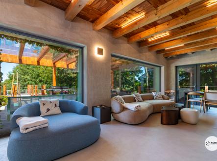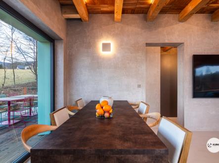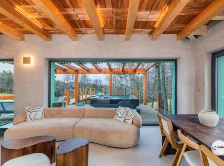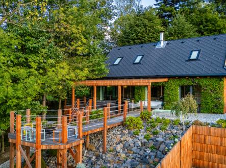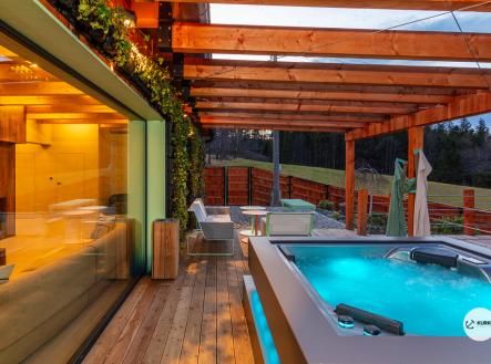 Nabízíme novostavbu rekreační nemovitosti o dispozici 4+KK stojící na pozemku o výměře 1.321 m2 v obci Kunčice pod Ondřejníkem. Velkoryse postavený a vybavený, zděný objekt se nachází v klidné části obce s příjezdem po obecní asfaltové komunikaci. Chata je plně dokončena a připravena k okamžitému užívání. Pokud hledáte nadstandardní nemovitost, která se k prodeji v Beskydech nevyskytuje, rádi Vás přivítáme na prohlídce. Majitel kladl důraz na maximální kvalitu použitých stavebních a interiérových prvků, kdy byla v exteriéru instalována automaticky zavlažována fasáda z živých rostlin, dřevěných došek, terasa o rozměru 105 m2, kde je dominantou vířivka Španělského výrobce vč. skleněného zastřešení k maximálnímu požitku. Tato terasa disponuje množstvím nábytku vyrobeného na míru, grilu zn. Weber a vyhlídky s posezením u ohniště. Pozemek je upraven zahradníkem s množstvím stromů, keřů a rostlin. O travnatou plochu se stará automatická sekačka zn. Husqvarna. K uskladnění dřeva je k dispozici prostorný dřevník. Na pozemku je již příprava prostoru k instalaci sauny. Pozemkem protéká místní potůček, který vytváří příjemnou a uklidňující atmosféru. Nemovitost se nenachází v záplavovém území. V 1NP se nachází zádveří, obývací prostor s plně vybavenou kuchyní o celkové výměře přes 60 m2, koupelna s dvěma kamennými umyvadly a velkým sprchovým koutem, samostatné wc a dvě technické místnosti. Z obývacího pokoje je přímý vstup na terasu. Hlavní dominantou obývacího prostoru je oboustranně prosklený krb zn. Höxter s šířkou 110 cm. V celém 1NP jsou na podlaze, stěnách, dveřích použity nejmodernější cementové stěrky a na stropě instalovány dřevěné došky, které doplňují vzhled exteriéru. V 2NP se nachází tři neprůchozí ložnice, koupelna s menším sprchovým koutem. V hlavní ložnici je umístěna volně stojící vana s krásným výhledem do přírody. Ve všech ložnicích je k dispozici stínící technika. Chata je napojena na elektřinu 230/400V, voda je z nově vybudovaného hlubinného vrtu, odpad je řešen čov. Vytápění zajišťuje tepelné čerpadlo zn. Daikin s rozvodem do všech podlahovým ploch. V případě, že hledáte plně vybavenou nemovitost bez kompromisů v chráněné krajinné oblasti Beskyd s možností odpočtu DPH, tak neváhejte kontaktovat makléře pro domluvení schůzky.