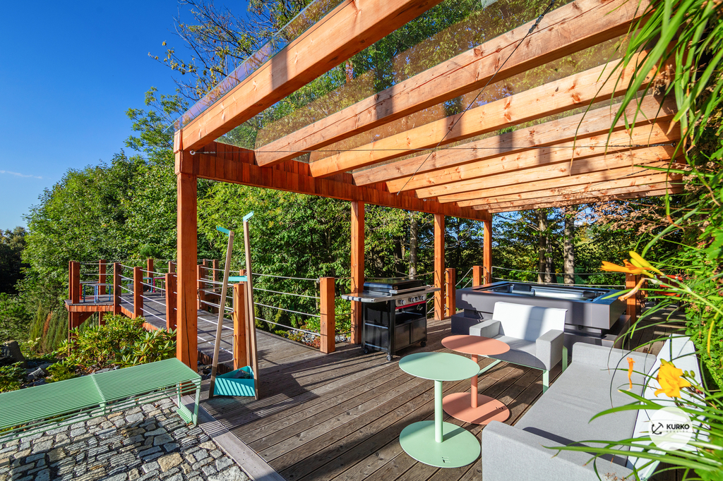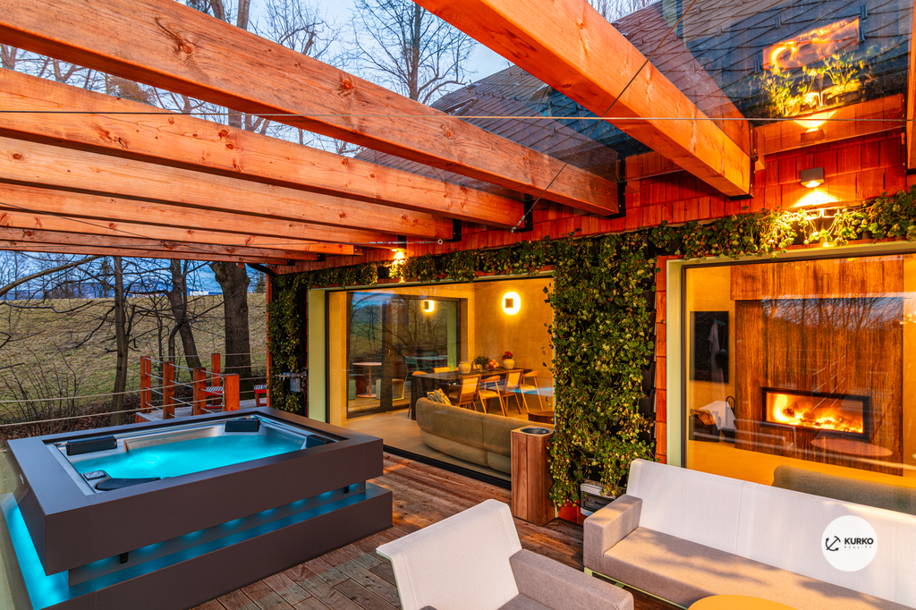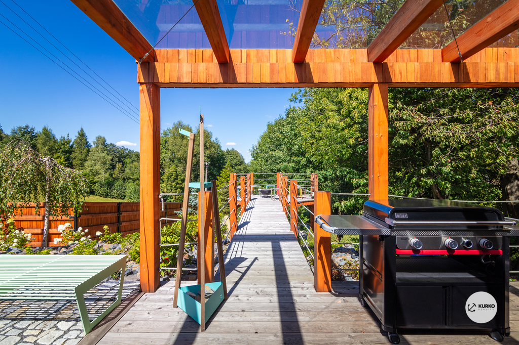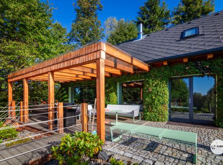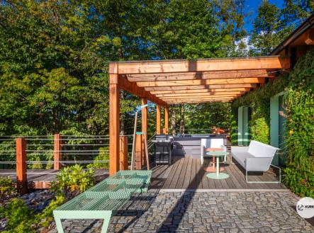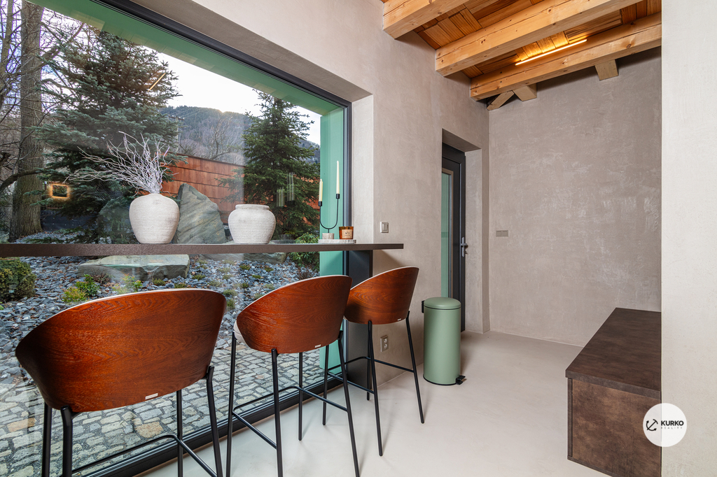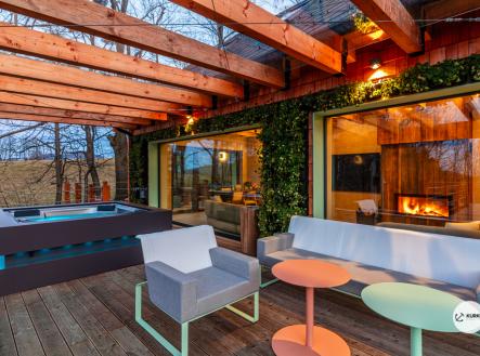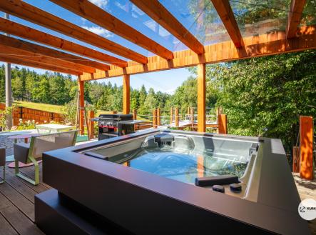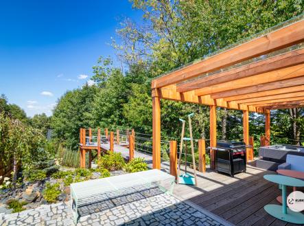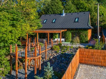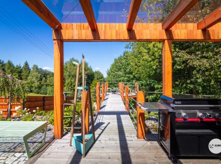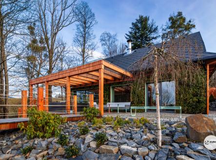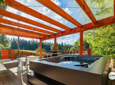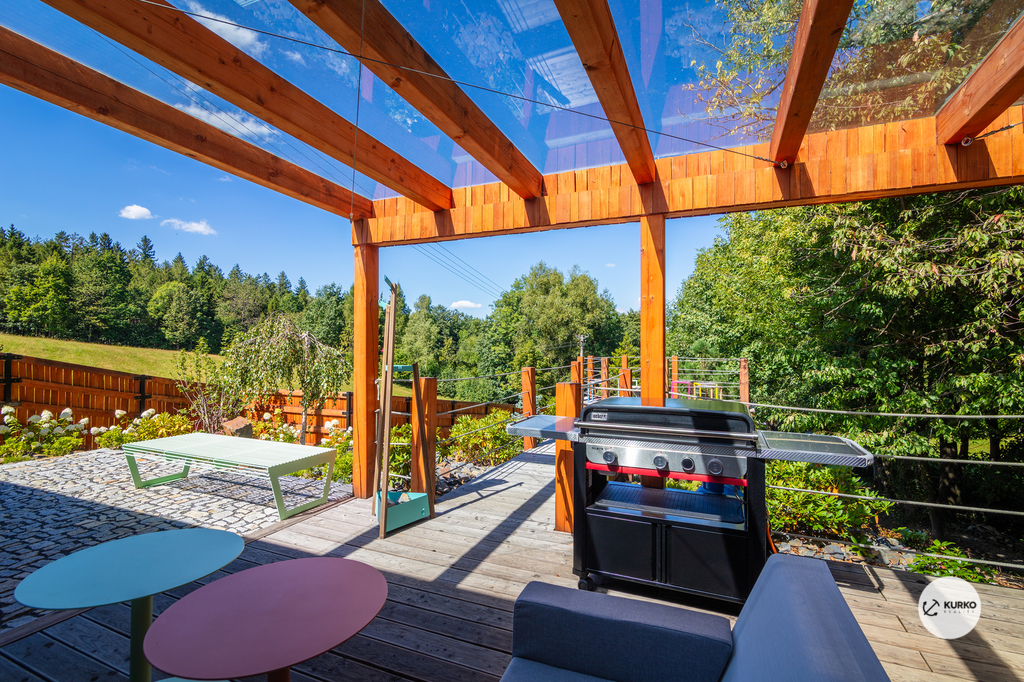 Nabízíme novostavbu rodinného domu o dispozici 4+KK stojící na pozemku o výměře 1.321 m2 v obci Kunčice pod Ondřejníkem. Velkoryse postavený a vybavený, zděný objekt se nachází v klidné části obce s příjezdem po obecní asfaltové komunikaci. Dům je plně dokončen a připraven k okamžitému užívání. Pokud hledáte nadstandardní nemovitost, která se k prodeji v Beskydech nevyskytuje, rádi Vás přivítáme na prohlídce. Majitel kladl důraz na maximální kvalitu použitých stavebních a interiérových prvků, kdy byla v exteriéru instalována automaticky zavlažována fasáda z živých rostlin, dřevěných došek, terasa o rozměru 105 m2, kde je dominantou vířivka Španělského výrobce vč. skleněného zastřešení k maximálnímu požitku. Tato terasa disponuje množstvím nábytku vyrobeného na míru, grilu zn. Weber a vyhlídky s posezením u ohniště. Pozemek je upraven zahradníkem s množstvím stromů, keřů a rostlin. O travnatou plochu se stará automatická sekačka zn. Husqvarna. K uskladnění dřeva je k dispozici prostorný dřevník. Na pozemku je již příprava prostoru k instalaci sauny. Pozemkem protéká místní potůček, který vytváří příjemnou a uklidňující atmosféru. Nemovitost se nenachází v záplavovém území. V 1NP se nachází zádveří, obývací prostor s plně vybavenou kuchyní o celkové výměře přes 60 m2, koupelna s dvěma kamennými umyvadly a velkým sprchovým koutem, samostatné wc a dvě technické místnosti. Z obývacího pokoje je přímý vstup na terasu. Hlavní dominantou obývacího prostoru je oboustranně prosklený krb zn. Höxter s šířkou 110 cm. V celém 1NP jsou na podlaze, stěnách, dveřích použity nejmodernější cementové stěrky a na stropě instalovány dřevěné došky, které doplňují vzhled exteriéru. V 2NP se nachází tři neprůchozí ložnice, koupelna s menším sprchovým koutem. V hlavní ložnici je umístěna volně stojící vana s krásným výhledem do přírody. Ve všech ložnicích je k dispozici stínící technika. Dům je napojen na elektřinu 230/400V, voda je z nově vybudovaného hlubinného vrtu, odpad je řešen čov. Vytápění zajišťuje tepelné čerpadlo zn. Daikin s rozvodem do všech podlahovým ploch. V případě, že hledáte plně vybavenou nemovitost bez kompromisů v chráněné krajinné oblasti Beskyd s možností odpočtu DPH, tak neváhejte kontaktovat makléře pro domluvení schůzky.