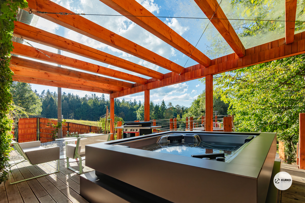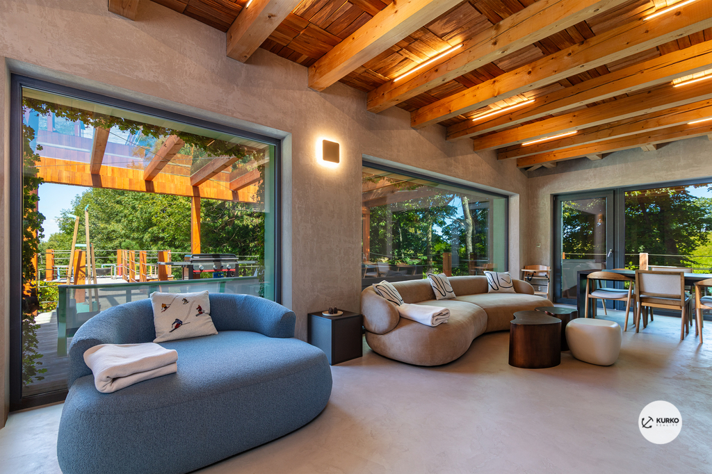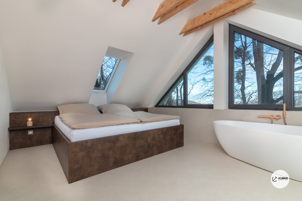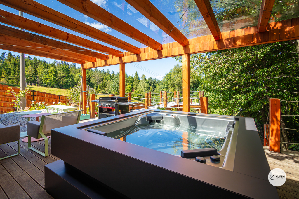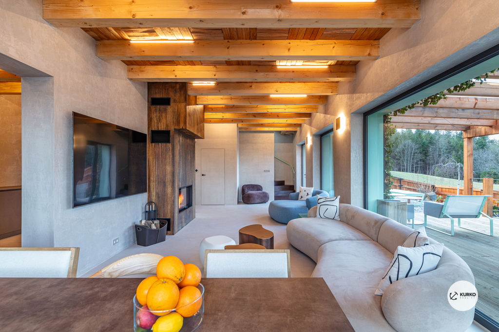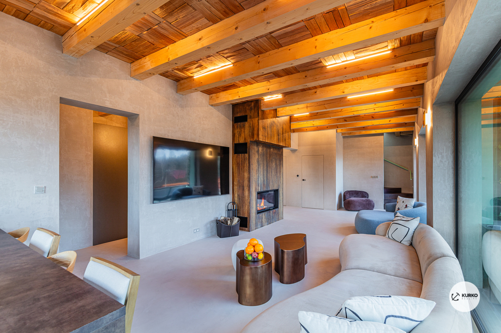 Nabízíme novostavbu rodinného domu o dispozici 4+KK stojící na pozemku o výměře 1.321 m2 v obci Kunčice pod Ondřejníkem. Velkoryse postavený a vybavený, zděný objekt se nachází v klidné části obce s příjezdem po obecní asfaltové komunikaci. Dům je plně dokončen a připraven k okamžitému užívání. Pokud hledáte nadstandardní nemovitost, která se k prodeji v Beskydech nevyskytuje, rádi Vás přivítáme na prohlídce. Majitel kladl důraz na maximální kvalitu použitých stavebních a interiérových prvků, kdy byla v exteriéru instalována automaticky zavlažována fasáda z živých rostlin, dřevěných došek, terasa o rozměru 105 m2, kde je dominantou vířivka Španělského výrobce vč. skleněného zastřešení k maximálnímu požitku. Tato terasa disponuje množstvím nábytku vyrobeného na míru, grilu zn. Weber a vyhlídky s posezením u ohniště. Pozemek je upraven zahradníkem s množstvím stromů, keřů a rostlin. O travnatou plochu se stará automatická sekačka zn. Husqvarna. K uskladnění dřeva je k dispozici prostorný dřevník. Na pozemku je již příprava prostoru k instalaci sauny. Pozemkem protéká místní potůček, který vytváří příjemnou a uklidňující atmosféru. Nemovitost se nenachází v záplavovém území. V 1NP se nachází zádveří, obývací prostor s plně vybavenou kuchyní o celkové výměře přes 60 m2, koupelna s dvěma kamennými umyvadly a velkým sprchovým koutem, samostatné wc a dvě technické místnosti. Z obývacího pokoje je přímý vstup na terasu. Hlavní dominantou obývacího prostoru je oboustranně prosklený krb zn. Höxter s šířkou 110 cm. V celém 1NP jsou na podlaze, stěnách, dveřích použity nejmodernější cementové stěrky a na stropě instalovány dřevěné došky, které doplňují vzhled exteriéru. V 2NP se nachází tři neprůchozí ložnice, koupelna s menším sprchovým koutem. V hlavní ložnici je umístěna volně stojící vana s krásným výhledem do přírody. Ve všech ložnicích je k dispozici stínící technika. Dům je napojen na elektřinu 230/400V, voda je z nově vybudovaného hlubinného vrtu, odpad je řešen čov. Vytápění zajišťuje tepelné čerpadlo zn. Daikin s rozvodem do všech podlahovým ploch. V případě, že hledáte plně vybavenou nemovitost bez kompromisů v chráněné krajinné oblasti Beskyd s možností odpočtu DPH, tak neváhejte kontaktovat makléře pro domluvení schůzky.