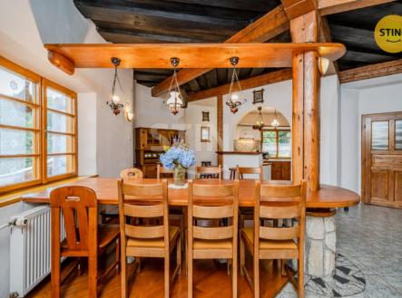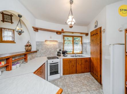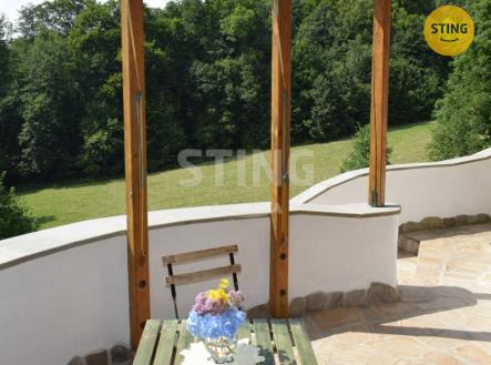 V exkluzivním zastoupení majitele Vám nabízím ke koupi jedinečný, stylový dům, který se nachází na konci slepé ulice- u lesa , v obci Kunčice pod Ondřejníkem. Dům z roku 1928 ve tvaru rotundy s centrálním komínem a kuželovou střechou stojí na vyvýšenině s krásným výhledem do kraje. V přízemí se nachází: vstupní chodbička, krásný, rozlehlý prostor propojené kuchyně s jídelnou a obývacím pokojem /KRB/, krytá terasa pro příjemné posezení, dále pak atypická ložnice, prostorná koupelna s hydromasážní vanou, WC a schodiště do 1. patra. V prvním patře jsou umístěny 4 samostatné, soukromé pokoje. Dům je zčásti podsklepený. K nemovitosti náleží svažitá zahrada o výměře 1037 m2 s umělým vodním tokem a zděným venkovním posezením. Citlivá rekonstrukce s využitím přírodních materiálů /dřevo, kámen, kovářské práce/ proběhla v letech 1999-2000. Technické informace: 2 kotle, vodárna, krb, falcovaná plechová střecha /falcované plechy/, žumpa, příjezd ošetřen věcným břemenem. V domě je systém centrálního vysávání zn. Husky s napojením ve všech obytných prostorách. Můj názor: Naprosto jedinečná poloha a styl této nemovitosti, blízkost lesa a genius loci jsou těžko popsatelné. Jedinečnost a exkluzivita této stavby možná neosloví každého, ale je zcela mimořádná.