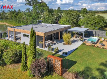 Výhradně Vám nabízíme prodej výjimečné novostavby domu 3KK+1, pozemek 1321m2. Atypicky řešený na klidném místě v Kunčicích. Jde o udržovaný dům s krytým stáním a terasou, celkem 181m2, užitná 101m2. Bioklimatická Pergola 24m2, bazén s celoroční vířivkou 10m2. Je zde provedeno velmi zdařilé navržení vnitřních dispozic a celkové provedení navrhnuté designerem. Zahrada je koncipovaná s maximální mírou na soukromí jak pro odpočinek tak relaxaci. Vnitřní vybavení domu - zn. Kuchyně zn. SYKORA s pracovní deskou na míru z kamene Dekton 6cm se zapuštěným granitovým dřezem, spotřebiče Electrolux, AEG (parní trouba a vestavěný kávovar, myčka a lednice), designová digestoř ELICA. Krbová kamna STORCH VULSINI s přisáváním vzduchu, nerezový komín tříplášťový, el. regulace. Jídelní stůl masiv a židle zn. TON, dub. Značková osvětlovací tělesa INTRO LUCE na d.o.. Dveře zn. SAPELI elegant, bezfalcové provedení se značkovým kováním zn. TUPAI DEDOS. Na chodbě a v ložnici nábytek na míru zn. SYKORA. Koupelna SOLITÉR, HANSGROHE, PURAVIDA a ALESSI. Vypínače a zásuvky zn. ROON dotykové. Vnitřní parapety žulové. Podlahy jsou v kombinaci vinylu a dlažby. Venkovní vybavení domu – Bioklimatická hliníková pergola 24m2, s otočnými lamelami a ze všech stran opatřená dle potřeby el. roletami se senzory proti dešti a větru. Celoroční vířivka, protiproud, osvětlení, Canadian Spa zn. Mollus 10m2 s pískovou filtrací. Terasa TERAFEST premium, betony a kamenný koberec PIEDRA. Zahradní dřevěný domek 14m2 včetně regálového systému. Z poloviny pozemku oplocení GABION. Brána na el. pohon, videotelefon, 3x bezpečnostní kamera. Celková výměra pozemku 1321m2 z toho je 123m2 zastavěno domem a zbývajících 1198m2 náleží k volnému pohybu po pozemku, který je oplocen. Zahrada je zatravněna s kombinací keřů a rostlin jako např. bambus dle zahradního architekta. Venkovní zastřešená pergola na elektrické dálkové ovládání umožnuje komfortní relaxaci v deštivých i parných dnech. Objekt je připojen na inženýrské sítě (vodovod, elektřinu a BIO septik). Dům je dřevostavba s hodnotou (B) 130 kWh/(m2.rok). Okna hliníková trojsklo, SCHUCO. Dům je vytápěn nízko nákladovými el. rohožemi a teplá voda řešena 160l zásobníkem. Tento dům se zahradou se nachází v klidné a okouzlující okrajové části obce Kunčice ve slepé ulici, která je zároveň soukromou cestou. Okolní zástavbu tvoří par domů. Vzdálenost do centra části obce je přibližně 500m, nájezd na dálnici Praha – HK, 10km. Uvedená nemovitost je vhodná pro trvalé a klidné bydlení. Vřele doporučuji zájemcům, kteří hledají klid, samotu, a dobrou dostupnost. Veškerá občanská vybavenost a infrastruktura v dosahu nedalekých Nechanic. Tento dům se nabízí vybavený. Tuto nemovitost velmi doporučuji, jelikož je kompletně zařízená a velmi zdařile provedená jak technicky, kvalitou a vzhledovým pojetím celé stavby ať už se nacházíte uvnitř a nebo venku. Pokud Vás nabídka zaujala, budu se Těšit s Vámi na osobní prohlídce v Kunčicích.