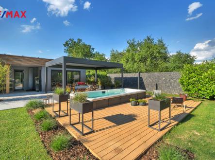 Výhradně Vám nabízíme prodej výjimečné novostavby domu 3KK+1, pozemek 1321m2. Atypicky řešený na klidném místě v Kunčicích. Jde o udržovaný dům s krytým stáním a terasou, celkem 181m2, užitná 101m2. Bioklimatická Pergola 24m2, bazén s celoroční vířivkou 10m2. Je zde provedeno velmi zdařilé navržení vnitřních dispozic a celkové provedení navrhnuté designerem. Zahrada je koncipovaná s maximální mírou na soukromí jak pro odpočinek tak relaxaci. Vnitřní vybavení domu - zn. Kuchyně zn. SYKORA s pracovní deskou na míru z kamene Dekton 6cm se zapuštěným granitovým dřezem, spotřebiče Electrolux, AEG (parní trouba a vestavěný kávovar, myčka a lednice), designová digestoř ELICA. Krbová kamna STORCH VULSINI s přisáváním vzduchu, nerezový komín tříplášťový, el. regulace. Jídelní stůl masiv a židle zn. TON, dub. Značková osvětlovací tělesa INTRO LUCE na d.o.. Dveře zn. SAPELI elegant, bezfalcové provedení se značkovým kováním zn. TUPAI DEDOS. Na chodbě a v ložnici nábytek na míru zn. SYKORA. Koupelna SOLITÉR, HANSGROHE, PURAVIDA a ALESSI. Vypínače a zásuvky zn. ROON dotykové. Vnitřní parapety žulové. Podlahy jsou v kombinaci vinylu a dlažby. Venkovní vybavení domu – Bioklimatická hliníková pergola 24m2, s otočnými lamelami a ze všech stran opatřená dle potřeby el. roletami se senzory proti dešti a větru. Celoroční vířivka, protiproud, osvětlení, Canadian Spa zn. Mollus 10m2 s pískovou filtrací. Terasa TERAFEST premium, betony a kamenný koberec PIEDRA. Zahradní dřevěný domek 14m2 včetně regálového systému. Z poloviny pozemku oplocení GABION. Brána na el. pohon, videotelefon, 3x bezpečnostní kamera. Celková výměra pozemku 1321m2 z toho je 123m2 zastavěno domem a zbývajících 1198m2 náleží k volnému pohybu po pozemku, který je oplocen. Zahrada je zatravněna s kombinací keřů a rostlin jako např. bambus dle zahradního architekta. Venkovní zastřešená pergola na elektrické dálkové ovládání umožnuje komfortní relaxaci v deštivých i parných dnech. Objekt je připojen na inženýrské sítě (vodovod, elektřinu a BIO septik). Dům je dřevostavba s hodnotou (B) 130 kWh/(m2.rok). Okna hliníková trojsklo, SCHUCO. Dům je vytápěn nízko nákladovými el. rohožemi a teplá voda řešena 160l zásobníkem. Tento dům se zahradou se nachází v klidné a okouzlující okrajové části obce Kunčice ve slepé ulici, která je zároveň soukromou cestou. Okolní zástavbu tvoří par domů. Vzdálenost do centra části obce je přibližně 500m, nájezd na dálnici Praha – HK, 10km. Uvedená nemovitost je vhodná pro trvalé a klidné bydlení. Vřele doporučuji zájemcům, kteří hledají klid, samotu, a dobrou dostupnost. Veškerá občanská vybavenost a infrastruktura v dosahu nedalekých Nechanic. Tento dům se nabízí vybavený. Tuto nemovitost velmi doporučuji, jelikož je kompletně zařízená a velmi zdařile provedená jak technicky, kvalitou a vzhledovým pojetím celé stavby ať už se nacházíte uvnitř a nebo venku. Pokud Vás nabídka zaujala, budu se Těšit s Vámi na osobní prohlídce v Kunčicích.