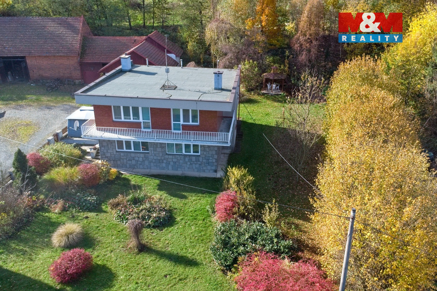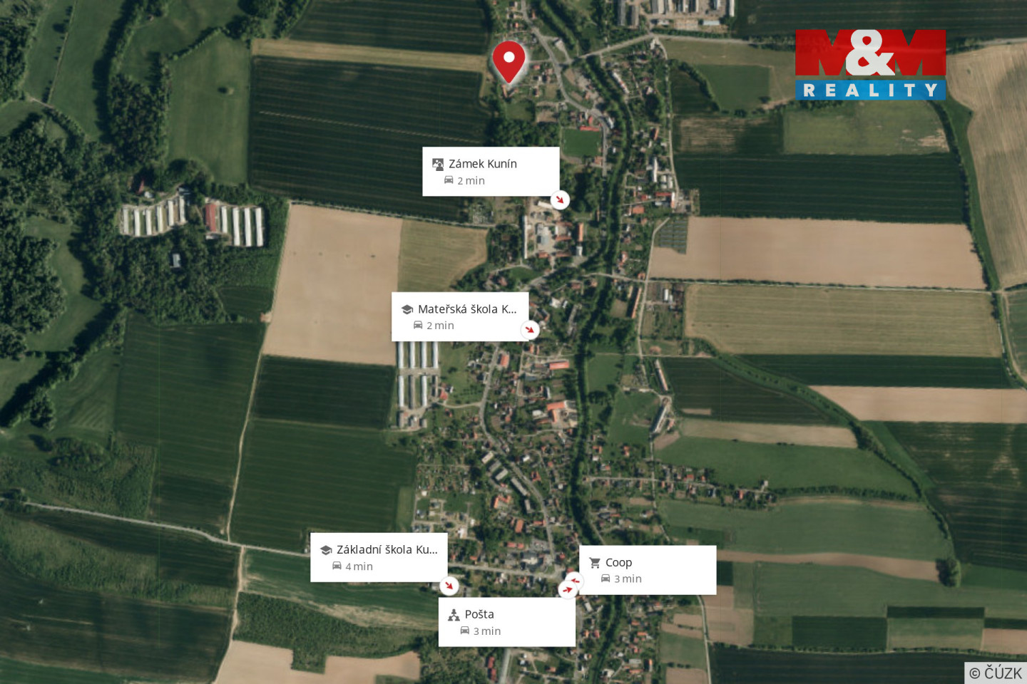 Nabízíme Vám k prodeji rodinný dům o dispozici 5+2 v klidné části obce Kunín. V 1.NP předsíň, velká společenská místnost s krbem, kuchyň, koupelna, samostatné WC, kotelna a výstup na zahradu. V 2.NP obývací pokoj, s výstupem na prostorný balkón, s jídelnou a kuchyní, pokoj, ložnice, koupelna a samostatné WC. Dům je vytápěn plynovým kotlem, případně poloautomatickým kotlem na tuhá paliva, napojen na obecní vodovod i kanalizaci. U domu je k dispozici ucelený pozemek o celkové výměře 5.551 m2, který nabízí jak pěknou udržovanou okrasnou zahradu, tak i prostor pro založení třeba ovocného sadu. Vedle domu hospodářská budova, kde jsou dvě samostatné garáže. Náš hypoteční specialista Vám nabídne nejvhodnější financování této nemovitosti. Doporučujeme prohlídku.