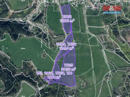 Soubor pozemků, 126193 m², Kunratice - Studený