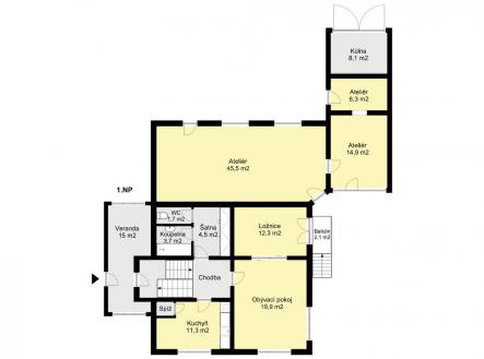 Tento velký rodinný dům se nachází ve velmi klidné městské části Kutné Hory - Sedlec v ulici U nadjezdu. Tato část města se nejvíce rozvíjela od 50. let minulého století a za dobu své existence se stala primárně rezidentní a starousedlickou oblastí. Nabízený dům pochází z výstavby v 60. letech minulého století a prošel řadou stavebních úprav v podobě jeho rozšiřování. Dům je nyní dispozičně řešen jako 6+2 s jednou koupelnou, samostatným WC na ploše cca 127 m2 a bezbariérovým ateliérem se samostatným vstupem o ploše cca 60m2. Hlavní část domu je částečně podsklepená. Sklep tvoří dvě místnosti o celkové ploše cca 23 m2. Obdélníková rovinatá parcela má celkovou plochu 805 m2 a celková zastavěná plocha činí cca 200m2. V zahradě se nachází stavba zděné kolny a letní dřevěný altánek. Stavba byla řešena jako cihlová na kamenném soklu se zvýšeným přízemím a rovnou plechovou střechou s atikou.. Stropní konstrukce jsou zděné, podlahy a schodiště betonové. I přes svoje stáří se jedná o velmi masivní a řemeslně dobře provedenou stavbu. Ačkoli je dům okamžitě možné obývat, tak ke splnění dnešních vyšších nároků na ekonomiku provozu a také komfortu a designu bude ideálním základem pro částečnou rekonstrukci. Rekonstrukce se jistě primárně dotkne výměny původních dřevěných oken a koupelny i toalety, které jsou již na hraně životnosti. Vzhledem k tomu, že dům byl po dekády užíván jako dvougenerační, nachází se v něm v každém patře samostatná kuchyně. Kuchyň ve 2NP je značně novější, cca 13 let stará, kdežto kuchyň v 1NP je ještě původní, pocházející z doby výstavby. Dům tak svým současným pojetím skvěle poslouží pro bydlení velké rodině nebo třeba pro spolubydlení s rodiči. A to i díky přístavbě ateliéru, který má samostatný vchod, je bezbariérový a je napojen na infrastrukturu domu. Přístavba je též případně vhodná pro podnikatelské účely. Ideální by mohla být jako kancelář, ordinace nebo prostor ke krátkodobému či dlouhodobému ubytování. Dům je napojen na všechny sítě a navíc se na pozemku nachází i vlastní studna používaná pro závlahu zahrady. Vytápění je řešeno plynovým kondenzačním kotlem a na střeše domu je instalovaná FVE o výkonu cca 3 MWh/rok. FWE není napojena na baterie a její přebytky jsou dodávány do sítě. Energetická náročnost domu je v kategorii G, nicméně není do ní zahrnuta úspora v podobě FVE. Zahrada je rozdělena na dvě části. Předzahrada a boční části zahrady slouží pro parkování aut, pro přístup do domu a do ateliéru. Část zahrady před domem tvoří příjemný zelený pás oddělující dům od chodníku a silnice. Zadní část zahrady o ploše cca 400 m2 sloužila jako odpočinková. Nachází se na ní množství okrasných keřů a vzrostlých stromů. Svou velikostí je tak zcela ideální pro městské a příměstské bydlení. Ačkoli nemovitost potřebuje investici do vylepšení svého technického stavu a také vzhledu interiéru, jedná se o velmi perspektivní bydlení. Dům poskytuje širokou škálu možného využití a nachází se ve velmi hezké a dopravně skvěle obslužné lokalitě. Neváhejte mne, prosím, kontaktovat a domluvte si prohlídku této skvělé nemovitosti. Jan Česal