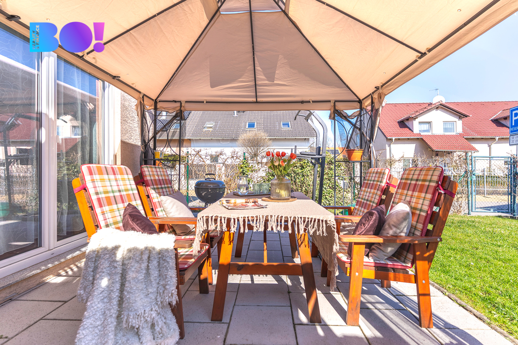 Nabízíme k prodeji krásný řadový rodinný dům 3+kk, situovaný v klidné oblasti na ulici Rulíková v Květnici, v okrese Praha-východ. Tento dvoupodlažní dům o užitné ploše 112 m² se nachází na pozemku o velikosti 196 m² a nabízí ideální prostor pro rodinné bydlení. Dům se vyznačuje velmi dobrým stavem a je plně vybaven. V přízemí se nachází prostorná moderní kuchyňská linka se spotřebiči a špajzkou. Z kuchyně je přístup do obývací části a z té pak na slunnou terasu s výhledem na zahradu o velikosti 135 m². V domě jsou k dispozici dva prostorné pokoje, které jsou navrženy tak, aby vyhovovaly potřebám rodiny. Vestavěné skříně v pokojích zajišťují dostatek úložného prostoru. K dispozici jsou dvě parkovací místa přímo před domem. Tento dům představuje ideální volbu pro rodiny, které hledají bezpečné, pohodlné a moderní bydlení v blízkosti přírody a městské infrastruktury. Okraj Prahy 8 km. V případě zájmu o prohlídku nás neváhejte kontaktovat.