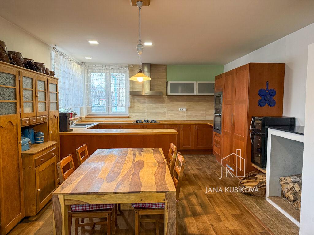 Nabízím Vám ke koupi rozlehlý rodinný dům v Jiráskově ulici v Kyjově, který představuje ideální řešení pro vícegenerační bydlení, kombinaci podnikání s bydlením nebo komfortní rodinné sídlo s nadstandardním zázemím. Zastavěná plocha a nádvoří činí 429 m², zahrada má výměru 770 m² a je krásně rovinatá. Velkou výhodou je vstup do domu jak z přední, tak ze zadní části, což umožňuje praktické oddělení jednotlivých částí nemovitosti. Dům je dispozičně řešen jako dvě samostatné bytové jednotky. Dispozice domu Přízemí – 2+kk + sociální zázemí vstupní chodba kuchyně s jídelnou propojená s obývacím pokojem samostatná ložnice koupelna s vanou, sprchovým koutem a WC komora pod schodištěm Patro – 3+1 + sociální zázemí chodba tři obytné pokoje samostatná kuchyně prostorná koupelna s vanou, WC a umyvadlem komora jeden z pokojů je doplněn o praktické mezonetové spaní Suterén (celý podsklepený) kotelna tři technické místnosti Půdní prostor nabízí další možnosti úložného prostoru. Technický stav a vybavení Dům prošel přibližně před 15 lety rozsáhlou rekonstrukcí: plastová okna nové rozvody vody, tepení, elektřiny a odpadů zateplená fasáda (8 cm polystyren s tepelnými vlastnostmi jako 12 cm) sádrokartonové podhledy se sníženými stropy betonová střešní krytina KM Beta, nové latě Vytápění: kondenzační plynový kotel radiátory podlahové topení v přízemní koupelně, žebřík vše napojeno na ústřední vytápění krb o výkonu 11 kW jako alternativní zdroj tepla Dům je napojen na obecní vodovod. Na zahradě se nachází kopaná studna (průměr 1 m, hloubka 5 m) s užitkovou vodou, využívanou například pro splachování WC u pergoly. Wi-Fi pokrytí je po celém pozemku. Měsíční náklady na provoz domu se pohybují přibližně do 7.000 Kč. Zázemí, které dává domu skutečnou přidanou hodnotu Průjezd vede ke garáži s dílnou, sprchou a WC – ideální prostor pro podnikání, řemeslo, koníčky nebo samostatné technické zázemí. Na dvoře je pergola s letní kuchyní a samostatnou toaletou. Posezení je dimenzováno až pro cca 35 osob, což nabízí výjimečný prostor pro rodinné oslavy, setkání s přáteli či společenské akce. Rovinatá zahrada o výměře 770 m² poskytuje dostatek soukromí i prostoru pro odpočinek. Najdete zde jabloně, meruňky, švestky, lískový keř, maliny, borůvky, angrešty, vinnou révu a venkovní posezení s krbem. Parkování ve vjezdu v garáži jedno parkovací místo přímo před domem Lokalita – Jiráskova ulice, Kyjov (okres Hodonín) Nemovitost se nachází ve velmi dobře dostupné části města. V docházkové vzdálenosti je: autobusové nádraží (včetně prodejny Lidl) vlaková zastávka centrum města Kyjov s kompletní občanskou vybaveností obchody, restaurace, kavárny, lékárny a služby školy, školky a zdravotnická zařízení sportoviště, aquapark a další volnočasové aktivity cyklostezka pro rekreační i sportovní vyžití Město Kyjov je regionálním centrem s plnou infrastrukturou, kulturním životem a výbornou dostupností do Hodonína i Brna. V případě zájmu o bližší informace nebo sjednání prohlídky mne neváhejte kontaktovat. Ráda Vám dům osobně představím. Těším se na vás …